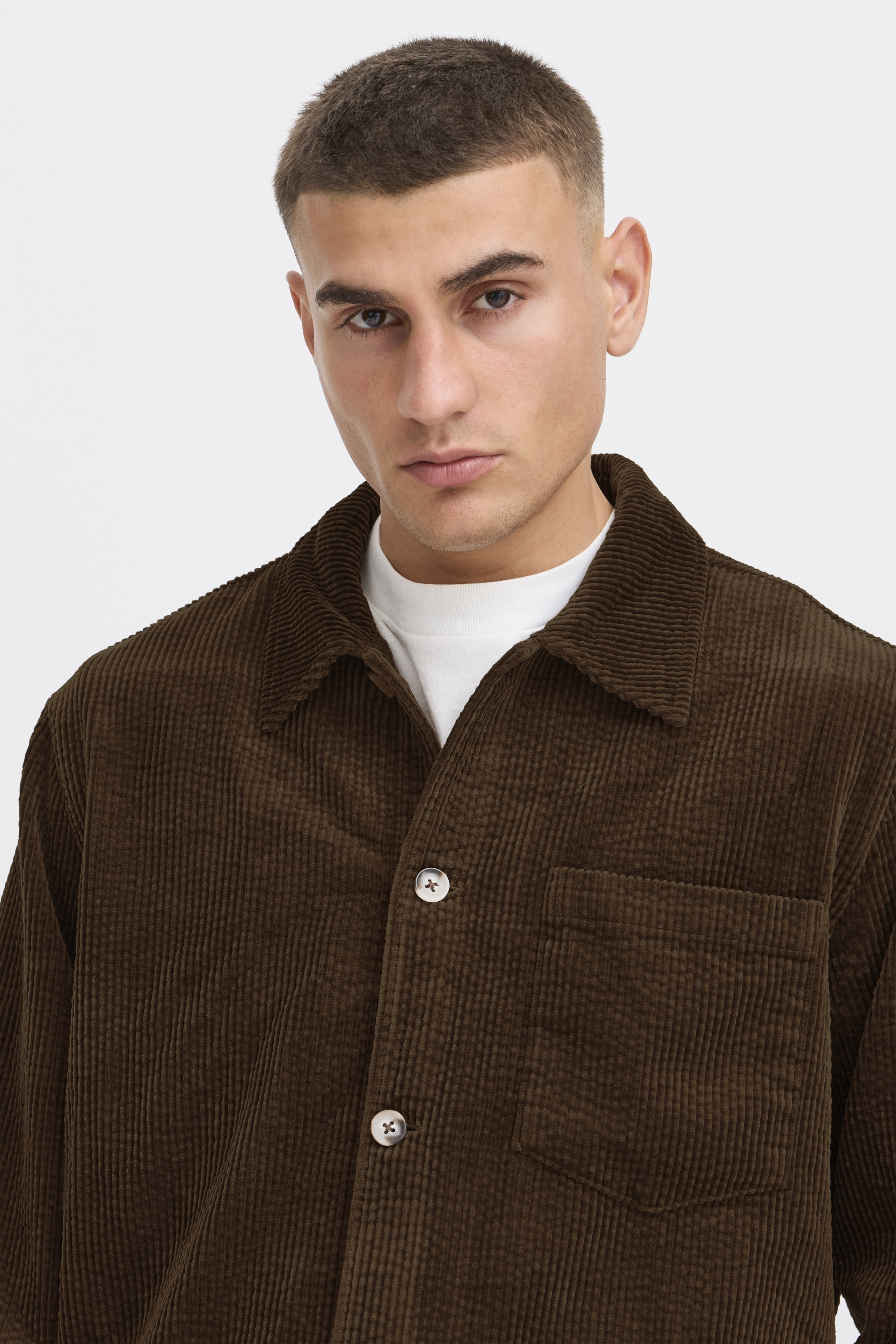 Универсальная мужская куртка Solid - идеальный выбор для минимализма в повседневном стиле. Изготовлена из 100% хлопка, который обеспечивает комфорт и долговечность. Доступна в коричневом и темно-синем цветах: коричневый добавляет тепла для осенних образов, а темно-синий — глубины для многослойных комплектов с джинсами или брюками.