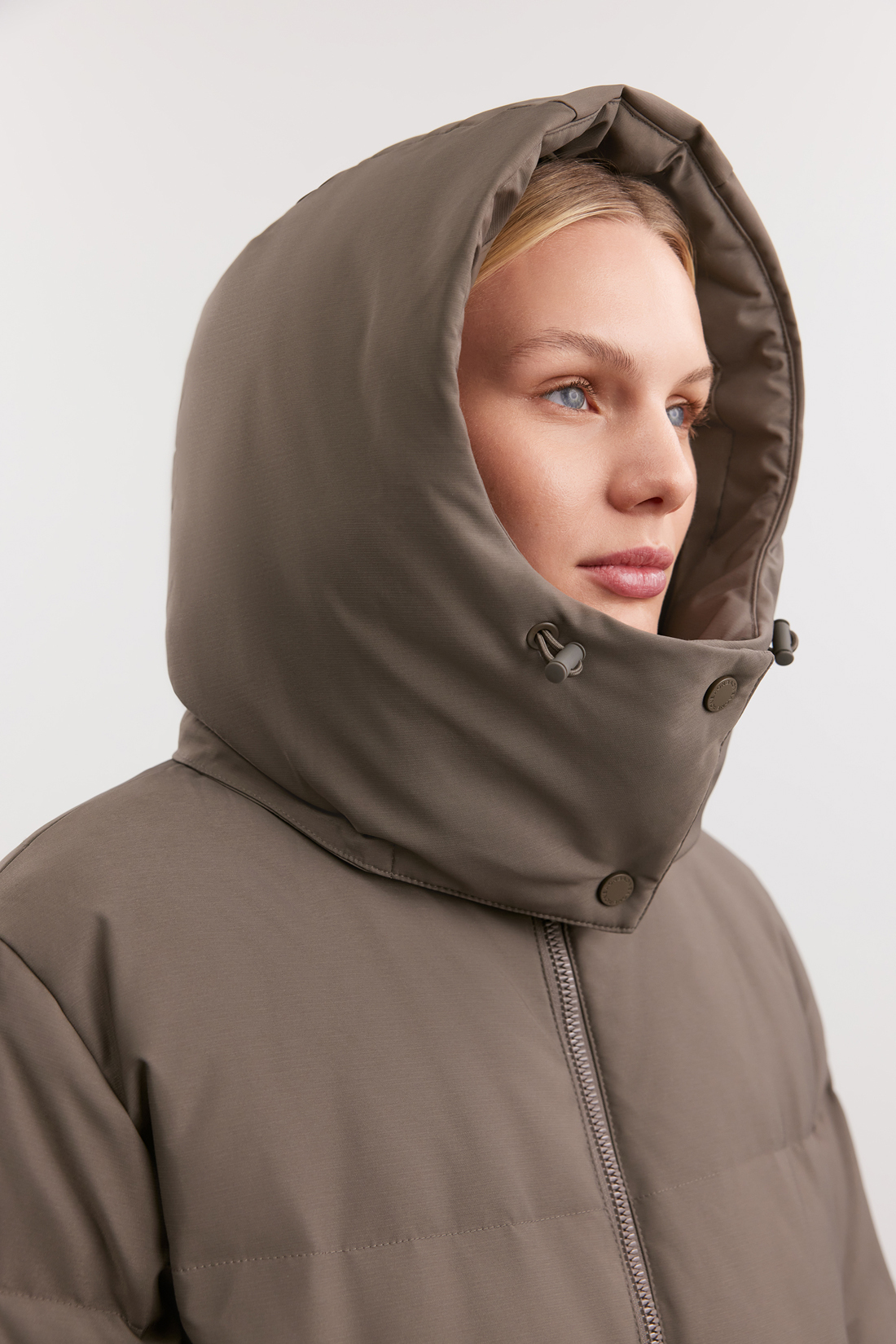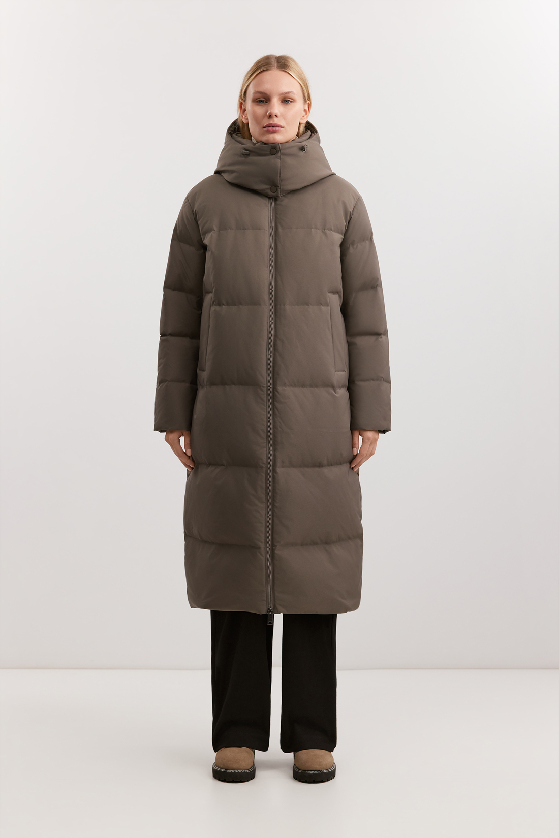 Теплое пальто для суровой зимы: его изготовили из плотной ветрозащитной ткани с комплексной водоотталкивающей пропиткой, обеспечивающей надежную защиту от непогоды. Натуральный наполнитель из пуха и пера повышенной плотности создает эффективный теплоизоляционный барьер.