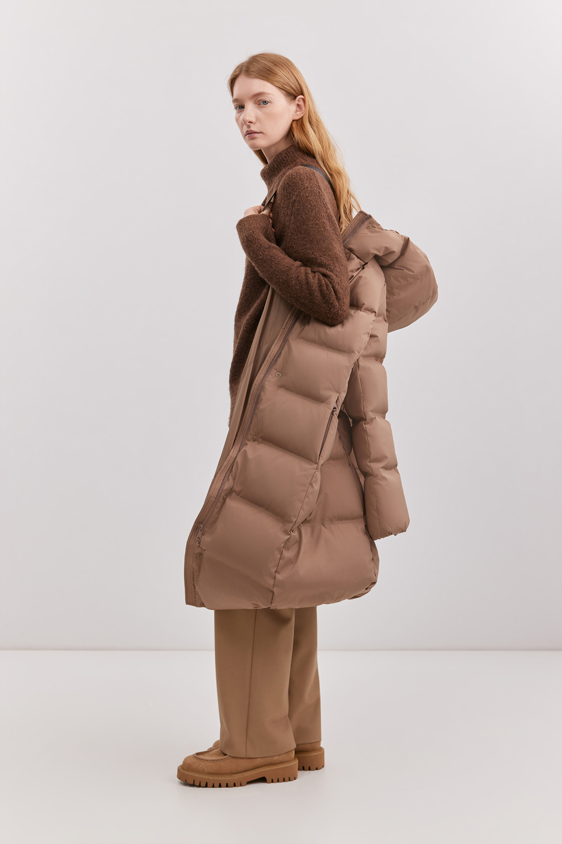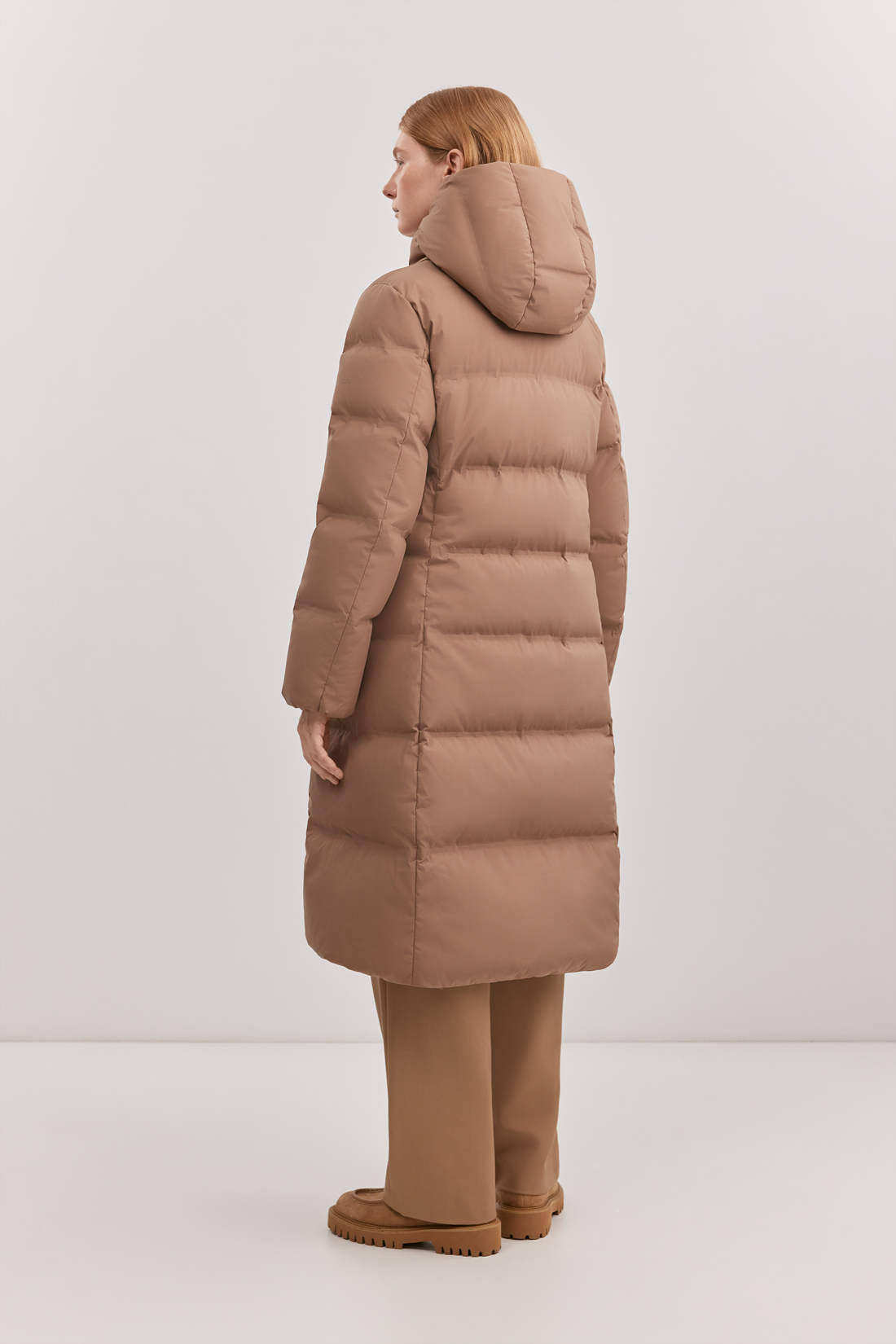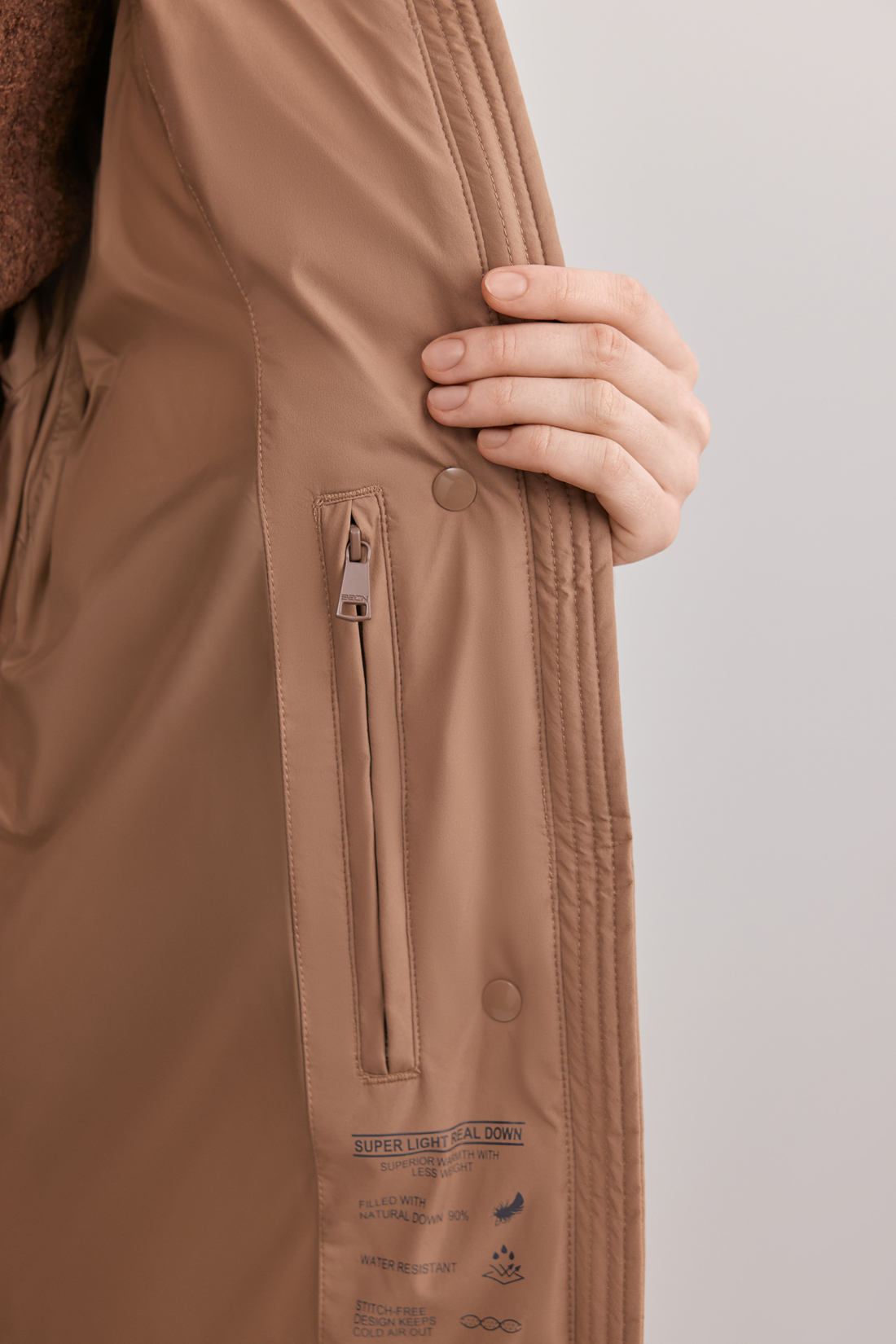 Женское длинное пуховое пальто BAON создано для суровой зимы: сочетает высокую теплозащиту и изящный полуприлегающий силуэт. Ткань с трёхслойной мембраной TPU 3000 и проклеенной стёжкой надёжно защищает от влаги, ветра и загрязнений. Наполнитель премиум-класса (90% пух / 10% перо, Fill Power 620) обеспечивает лёгкость и комфорт при температуре до –20 °C. Модель выполнена в элегантном минималистичном стиле и доступна в больших размерах.