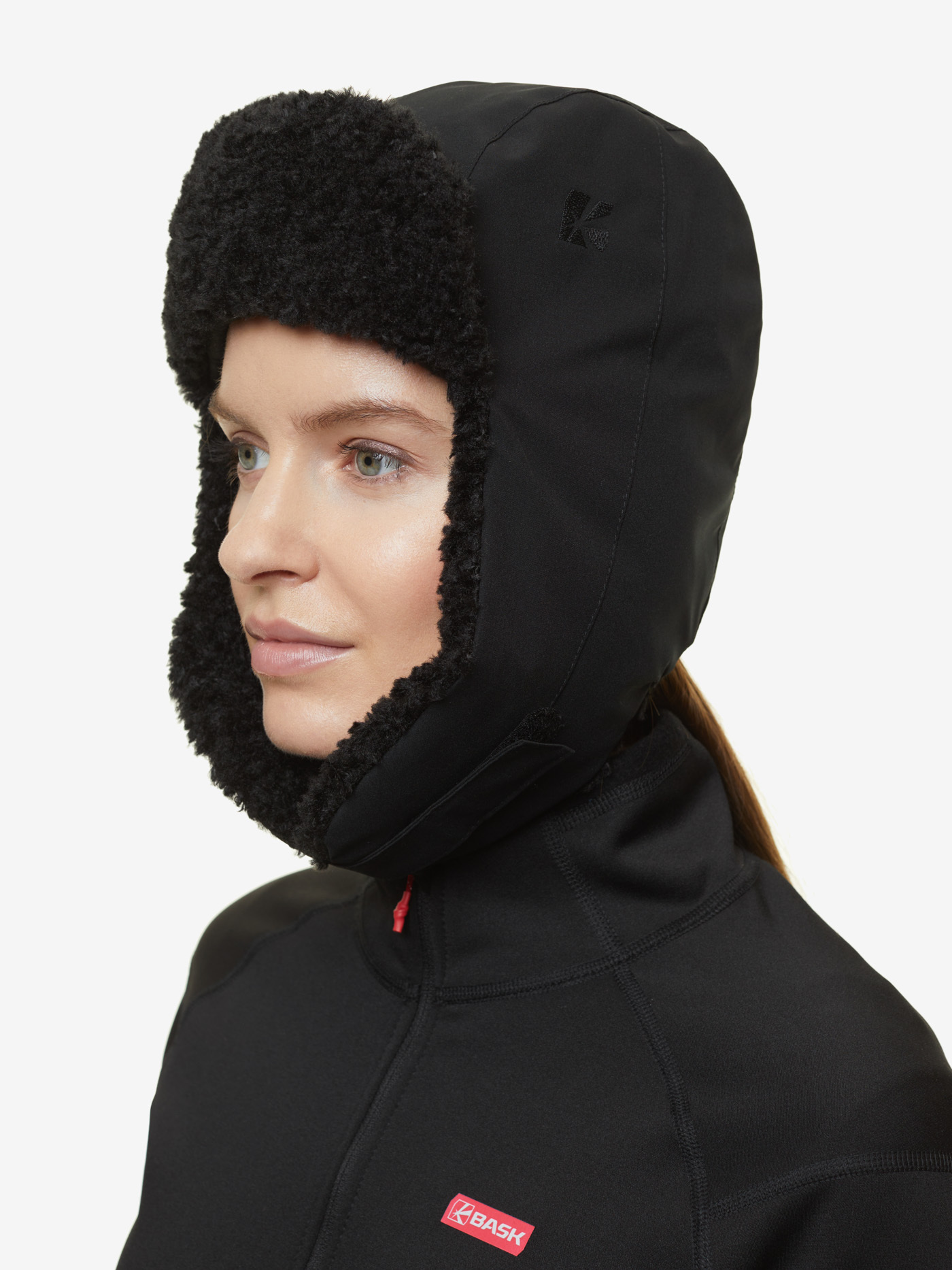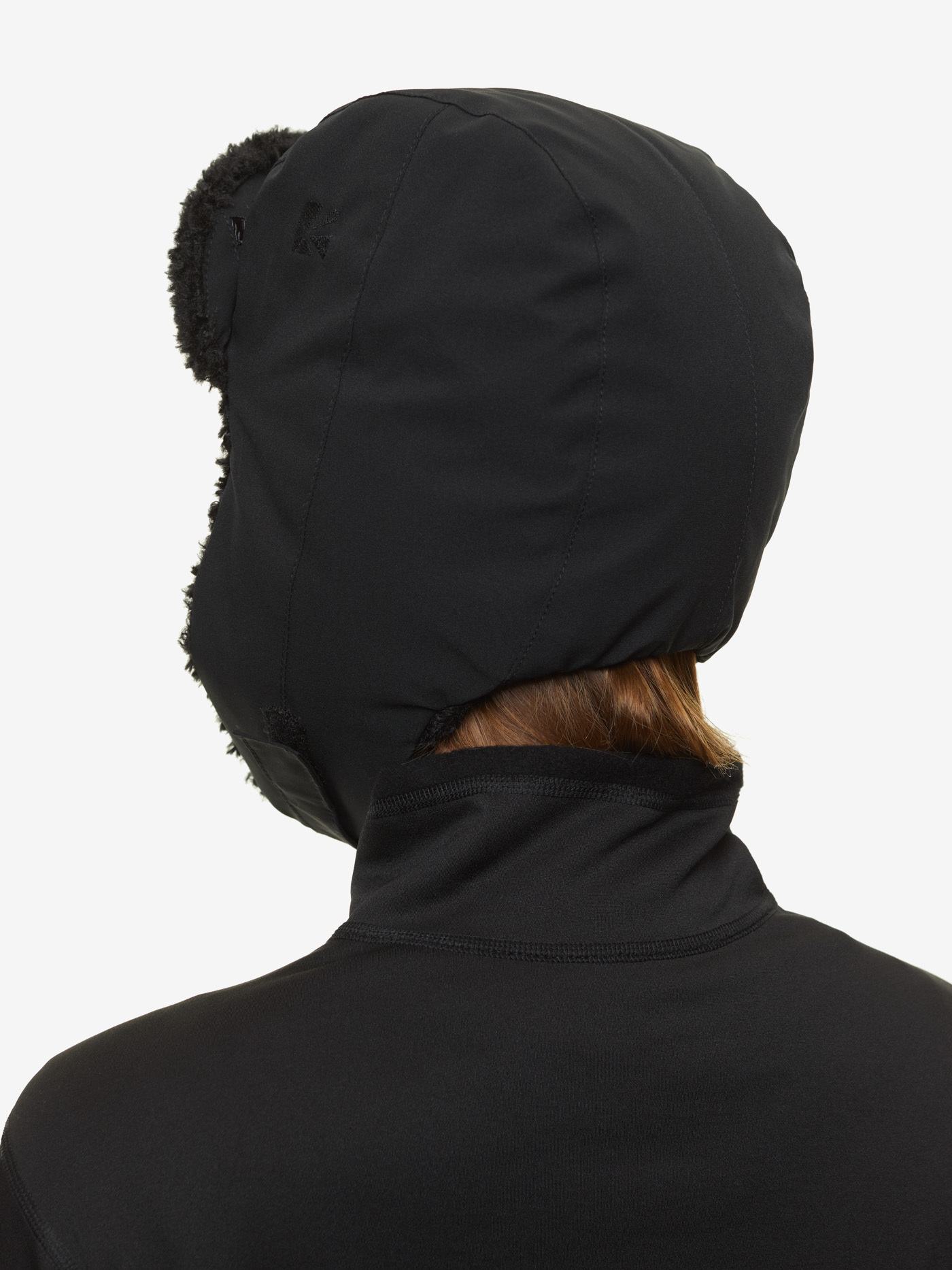 Теплая пуховая шапка-ушанка для женщин. Легкая и очень комфортная. Внешний мембранный материал защищает от снега, влаги и ветра.