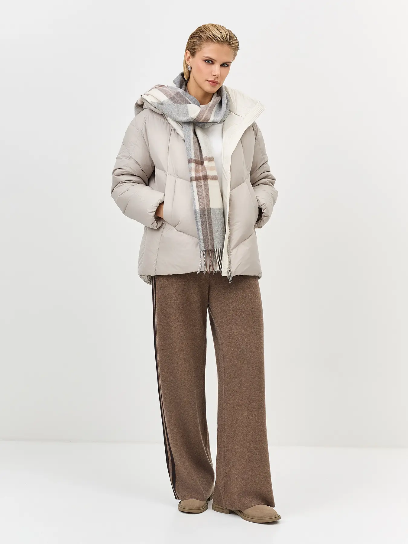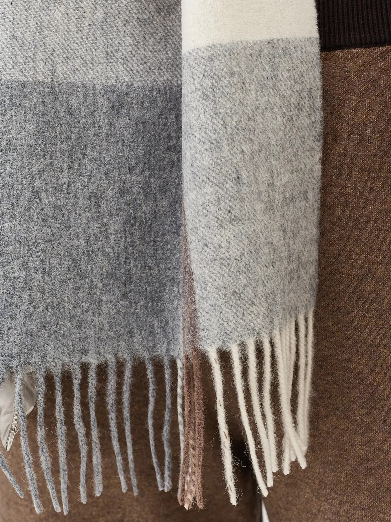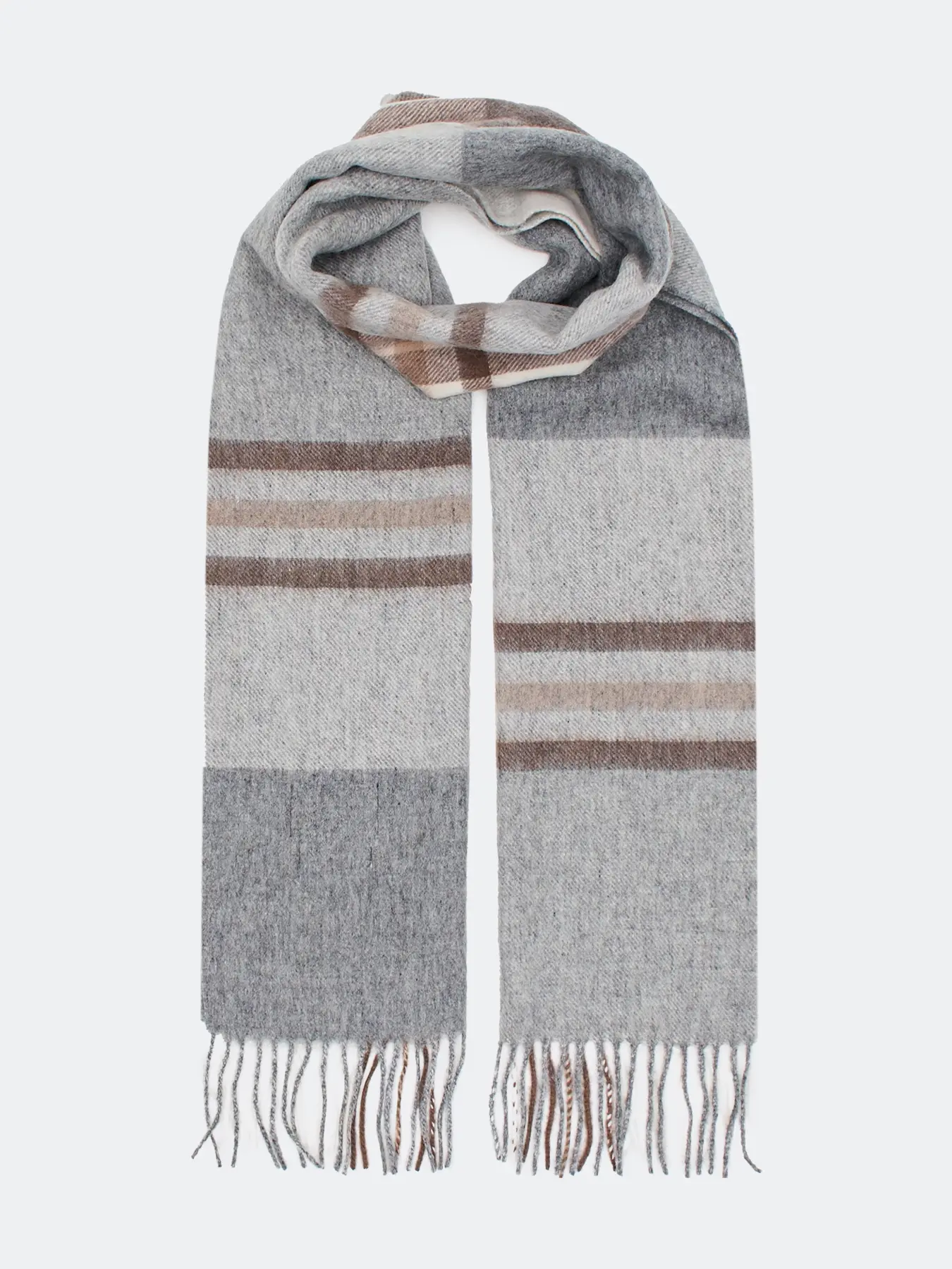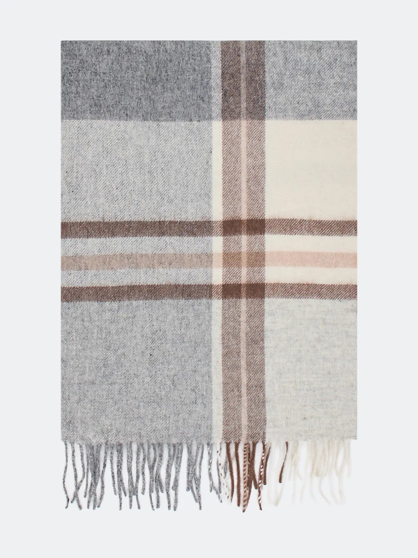 Шерстяной шарф в клетку с деликатной бахромой по краю. Прямоугольная форма, one size