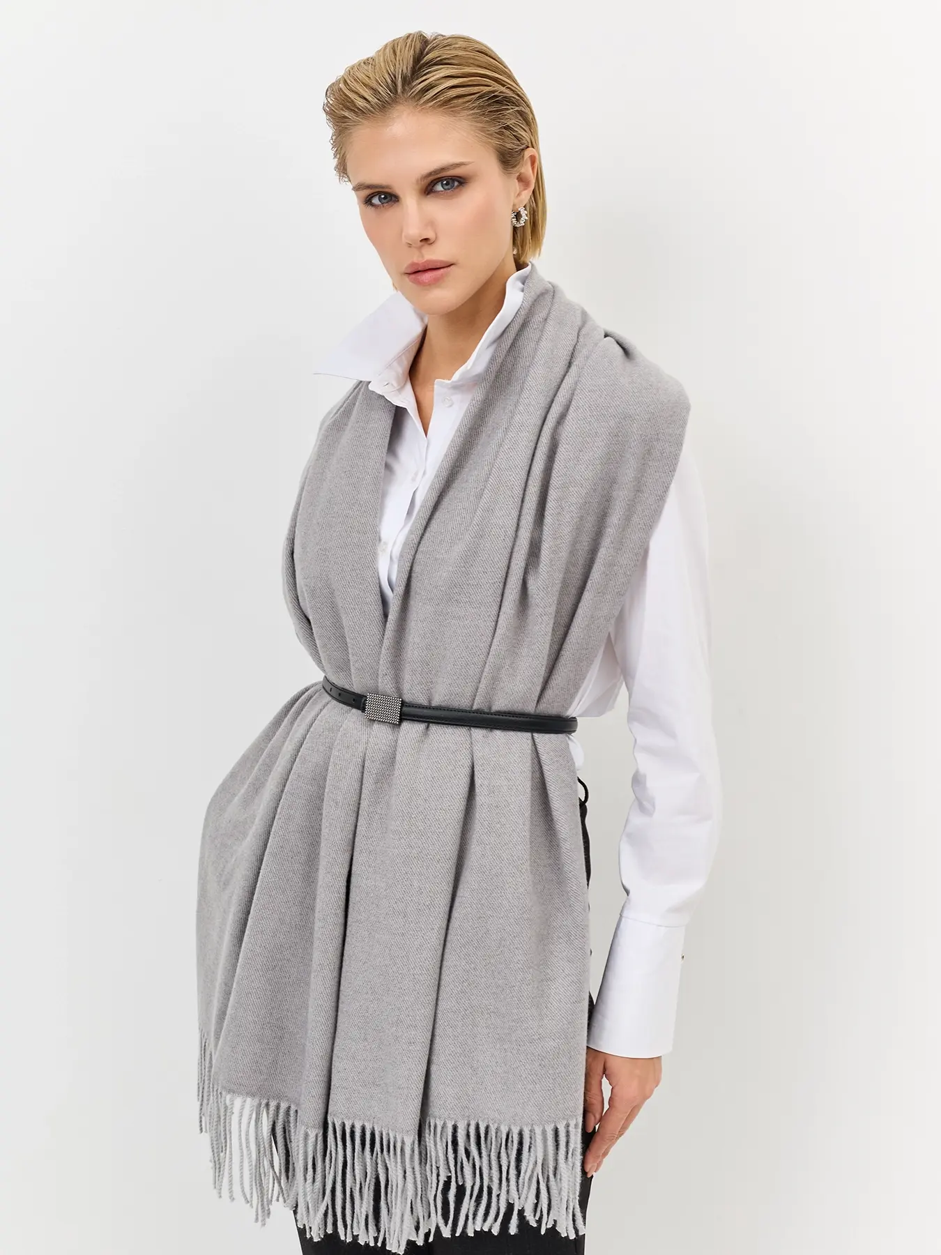 Тонкий палантин с ангорой в составе . Бахрома по краю. Прямоугольная форма, one size