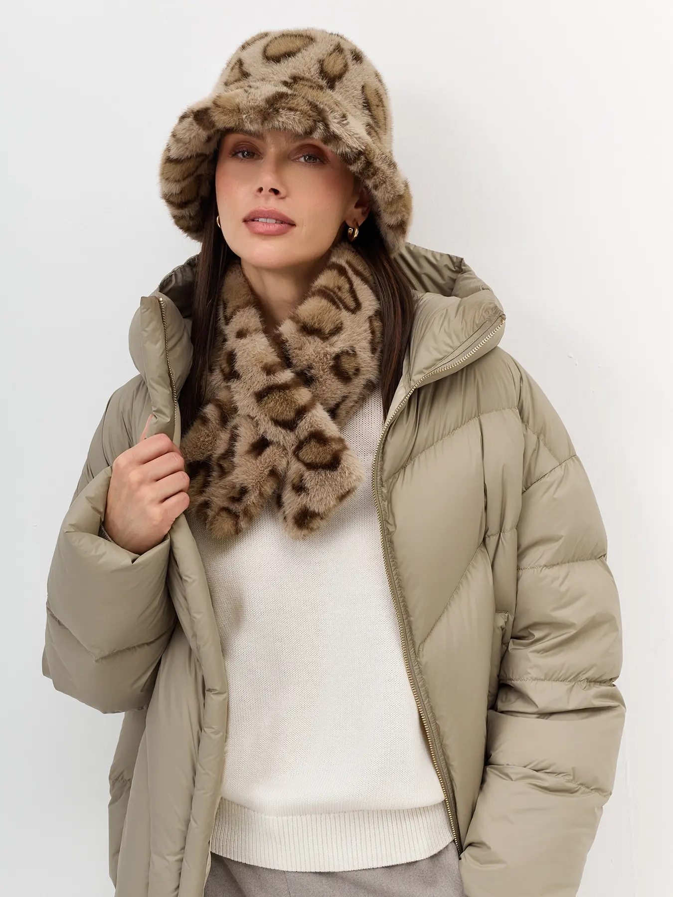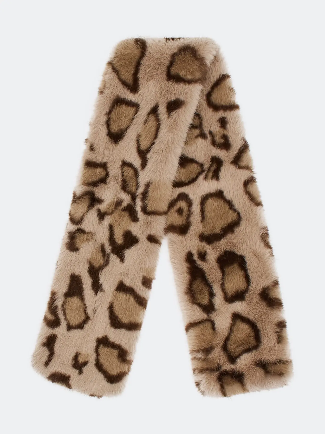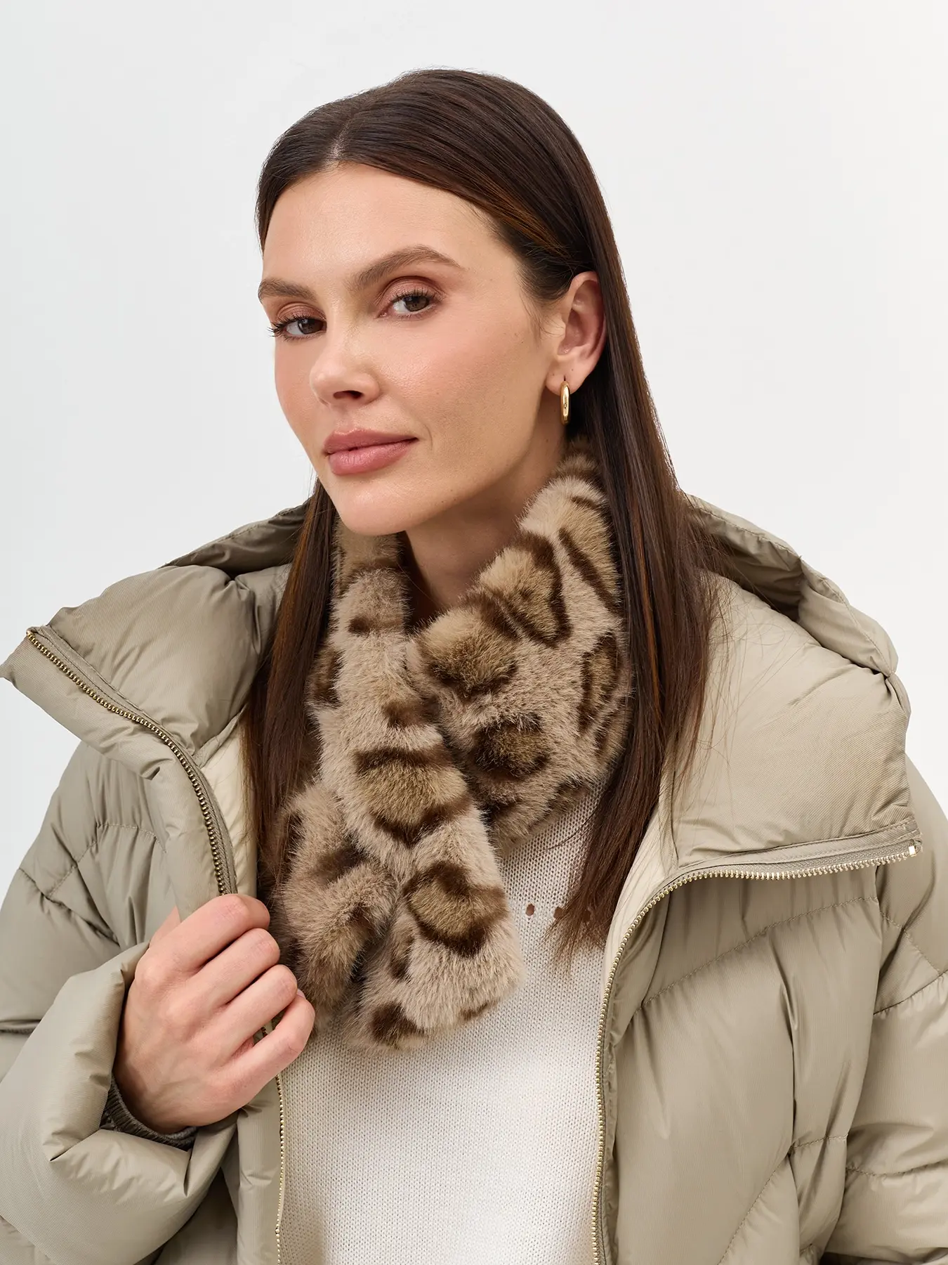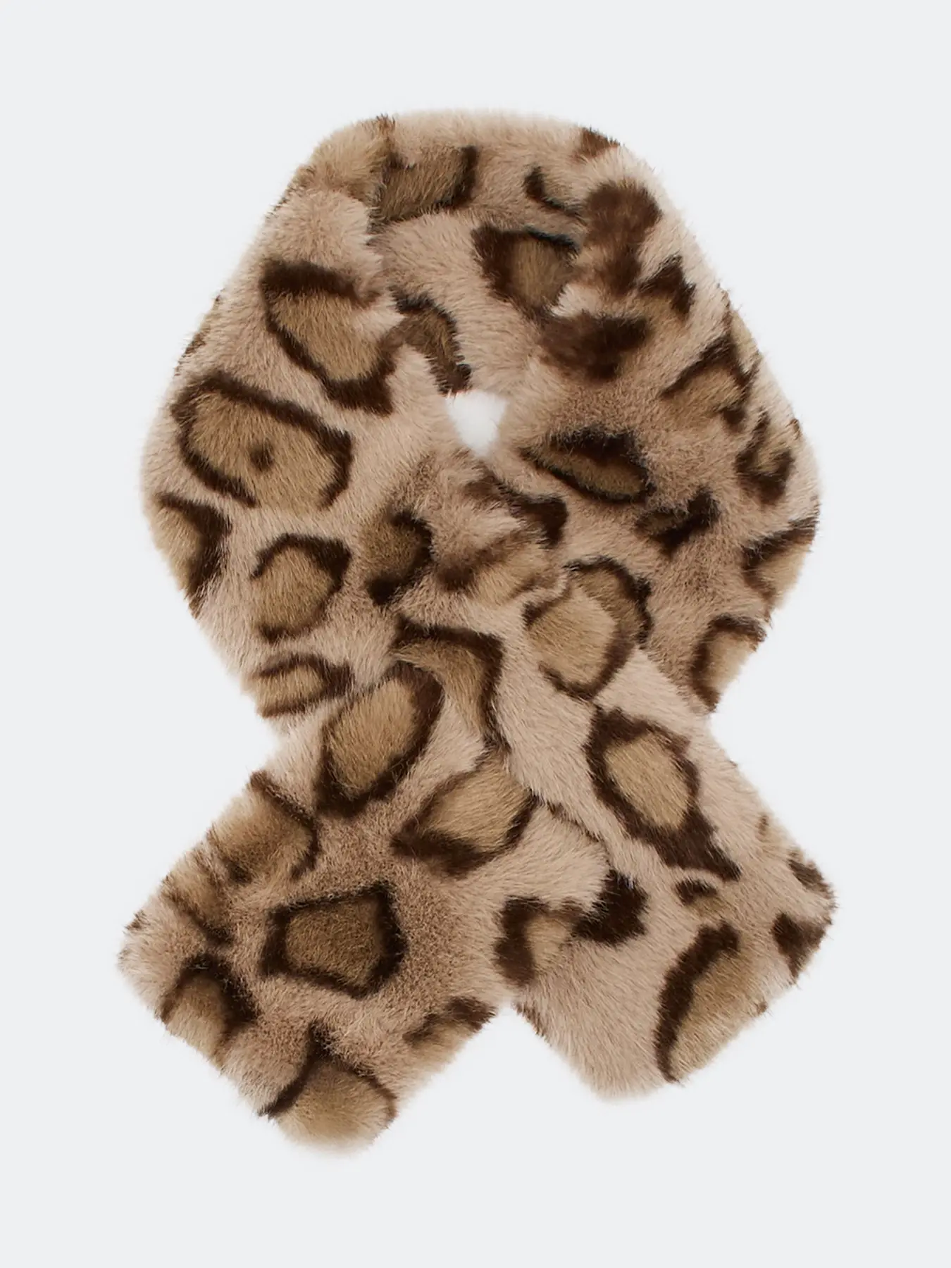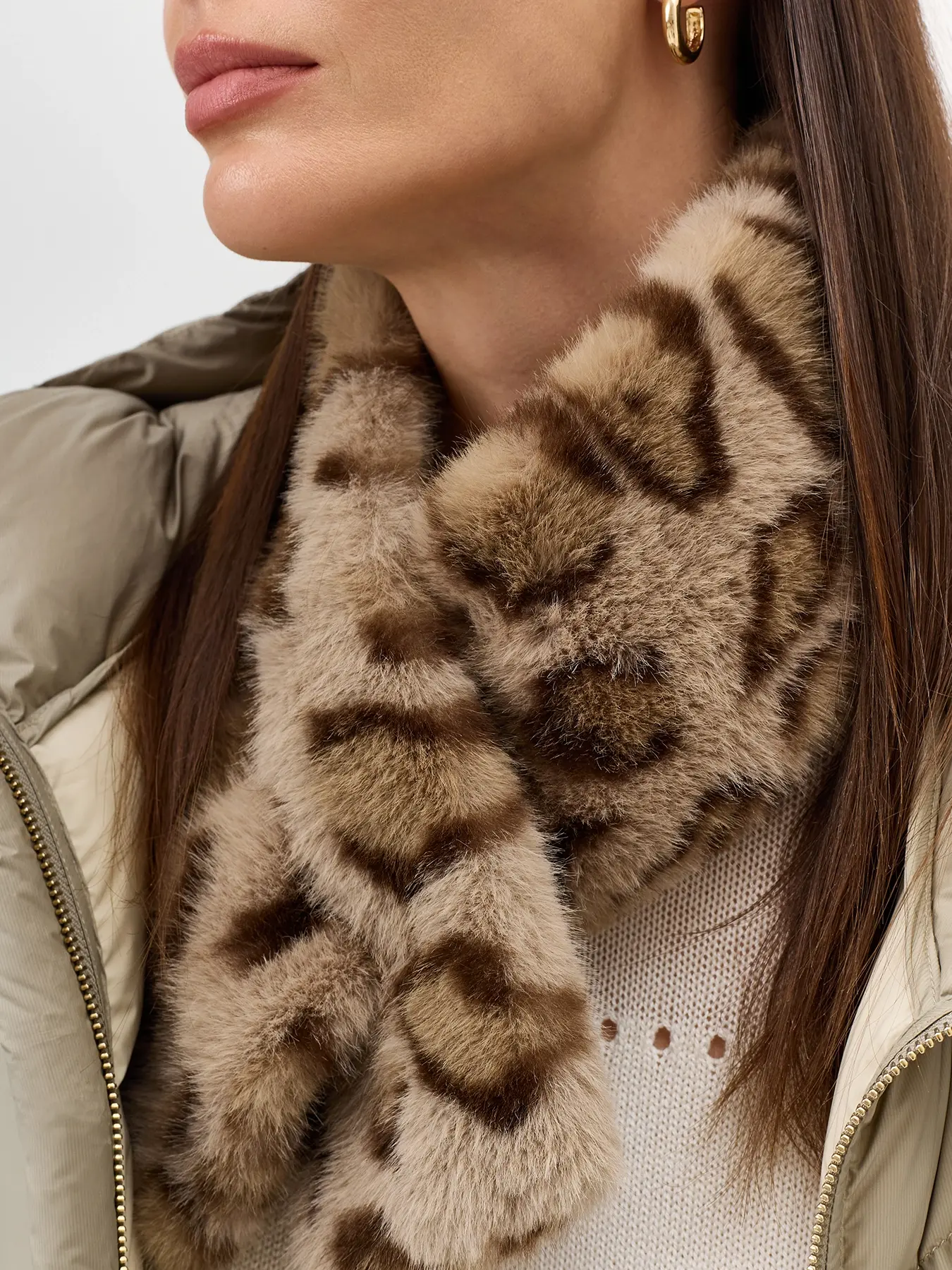 Мягкий шарф из искусственного меха с анималистичным принтом. Прямоугольная форма. Фиксация петлей