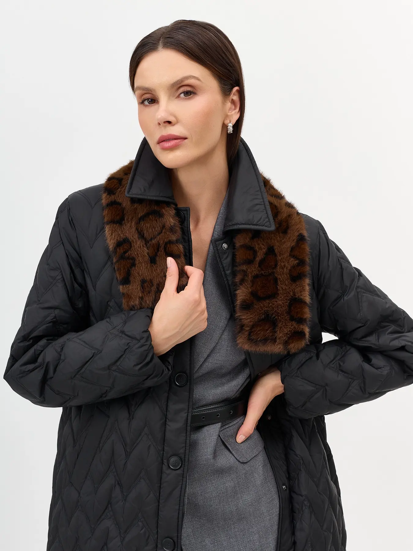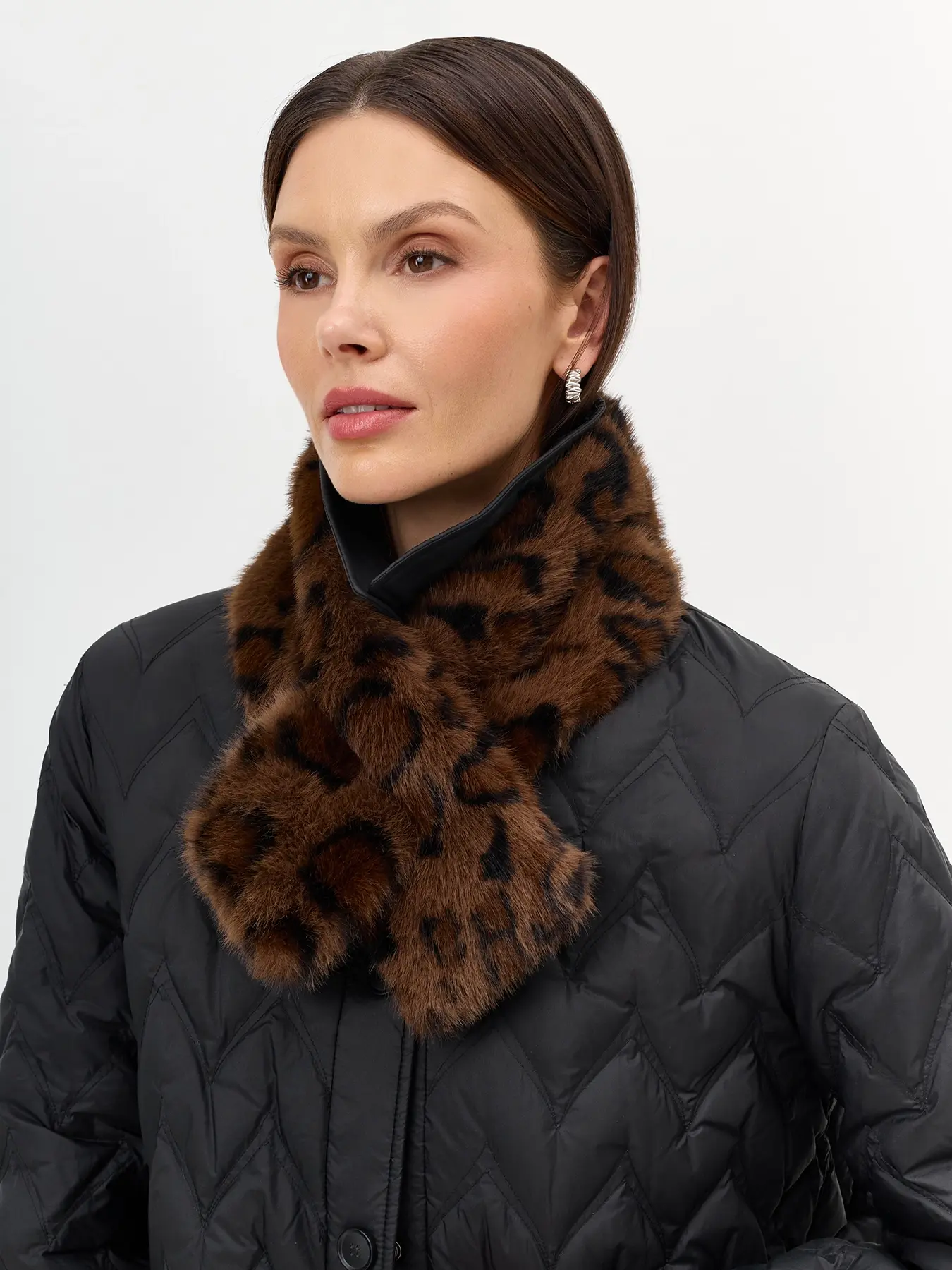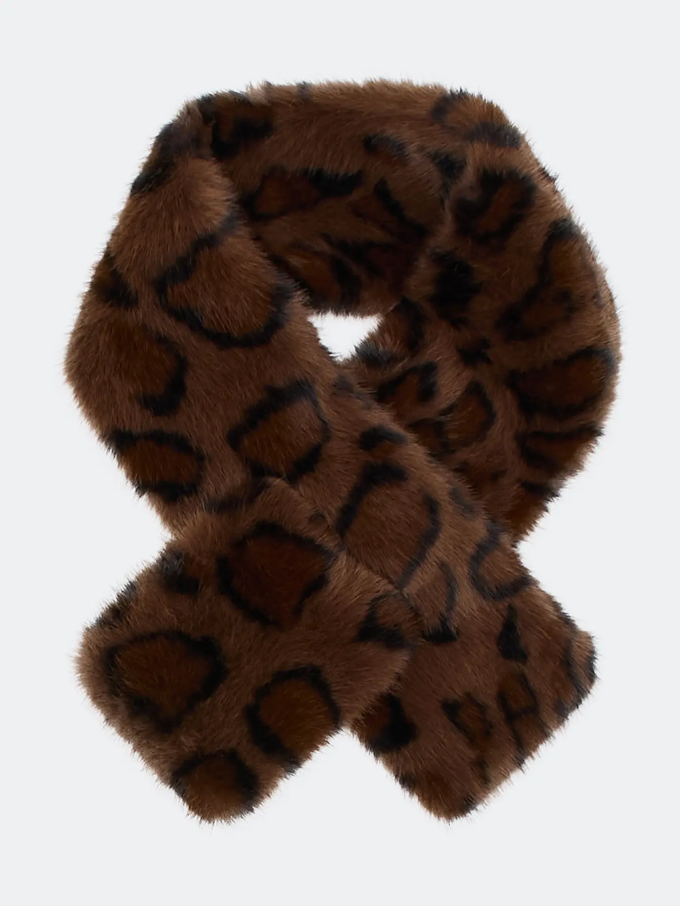 Мягкий шарф из искусственного меха с анималистичным принтом. Прямоугольная форма. Фиксация петлей