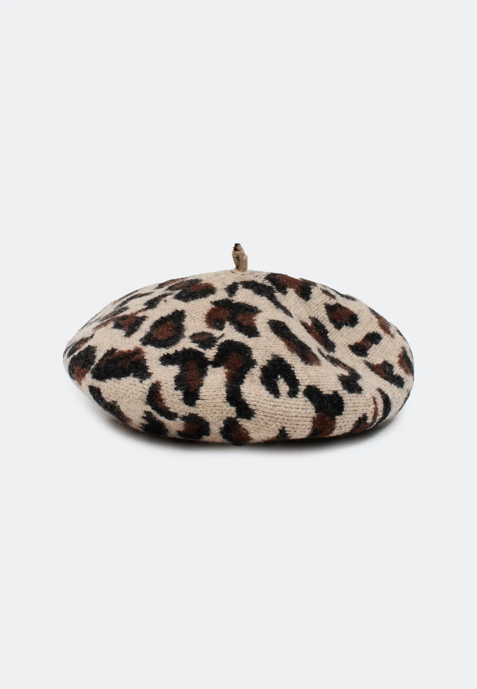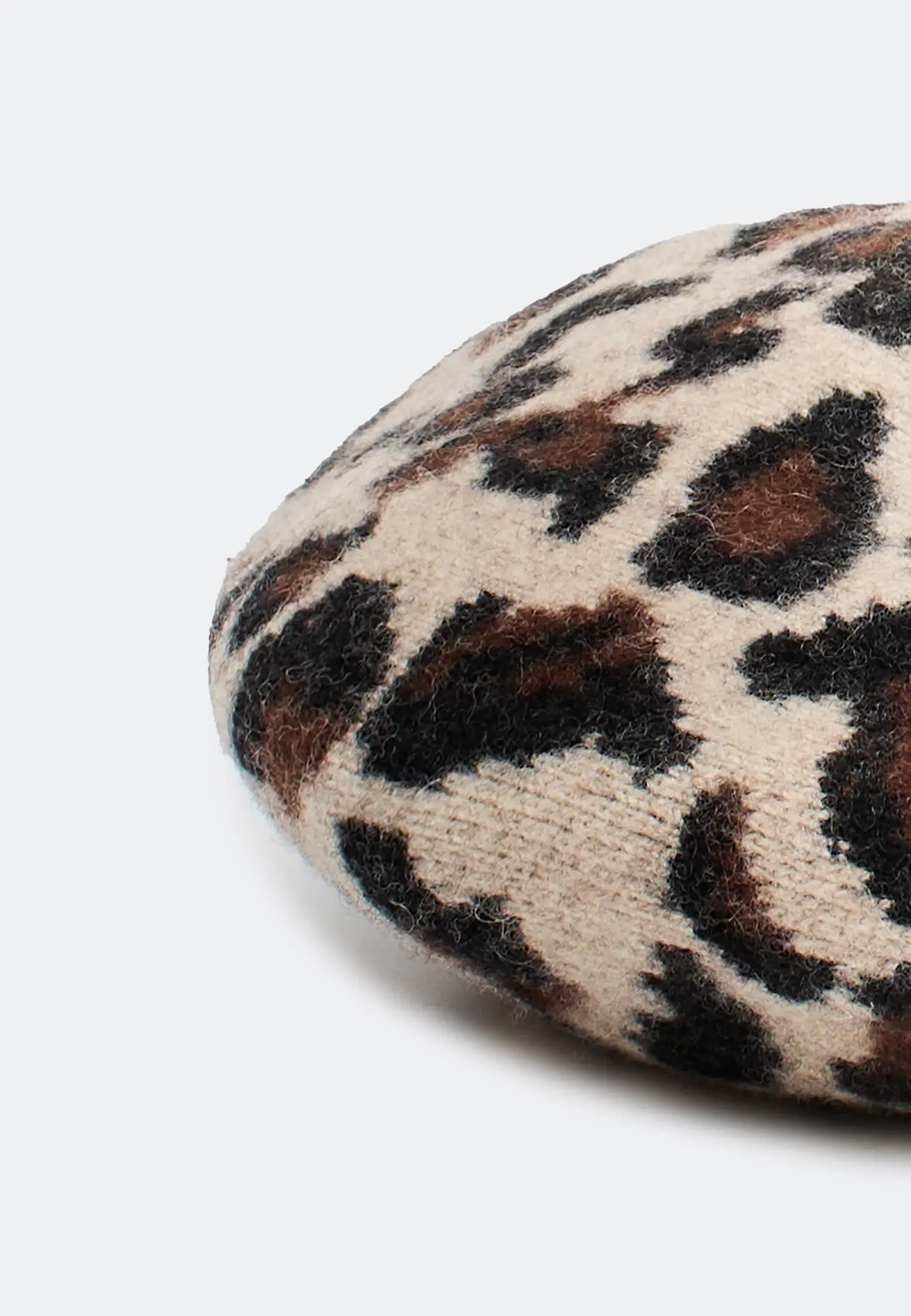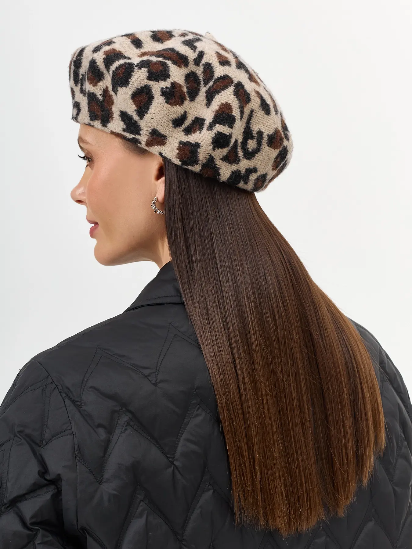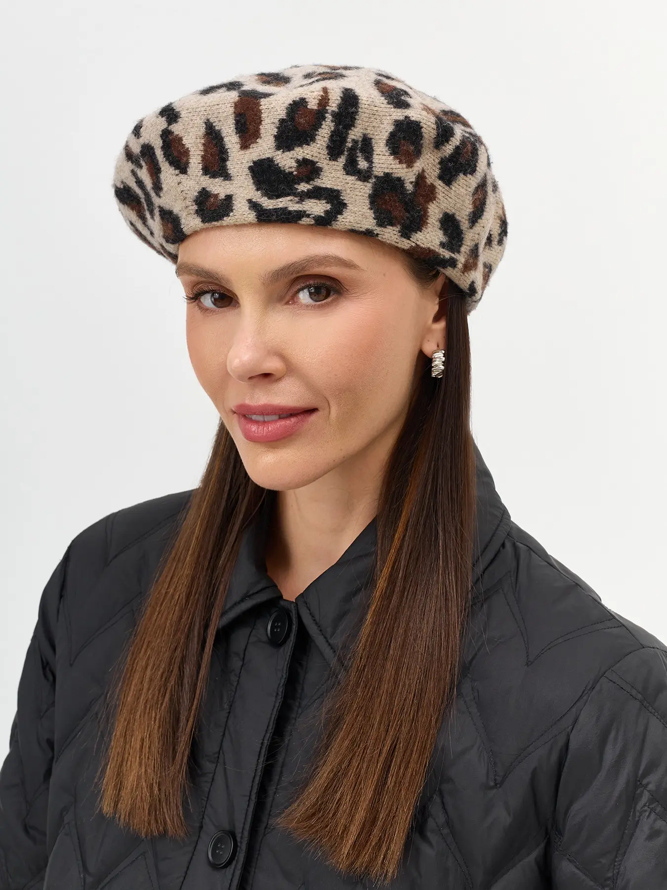 Вязаный берет из 100% шерсти с анималистичным принтом. Дополнен рибом по внутренней стороне для комфортной посадки.