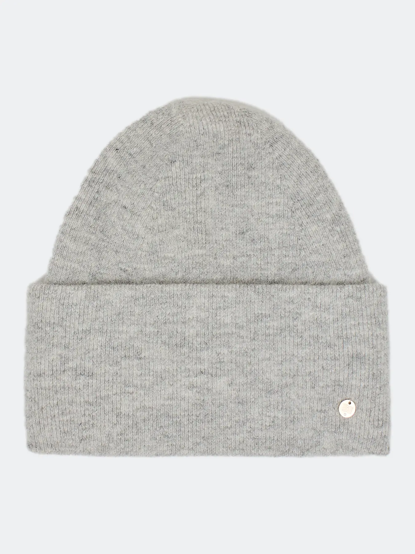 Шапка бини в рубчик. Дополнена декоративным металлическим декором на широком отвороте. В составе вискоза и ангора.