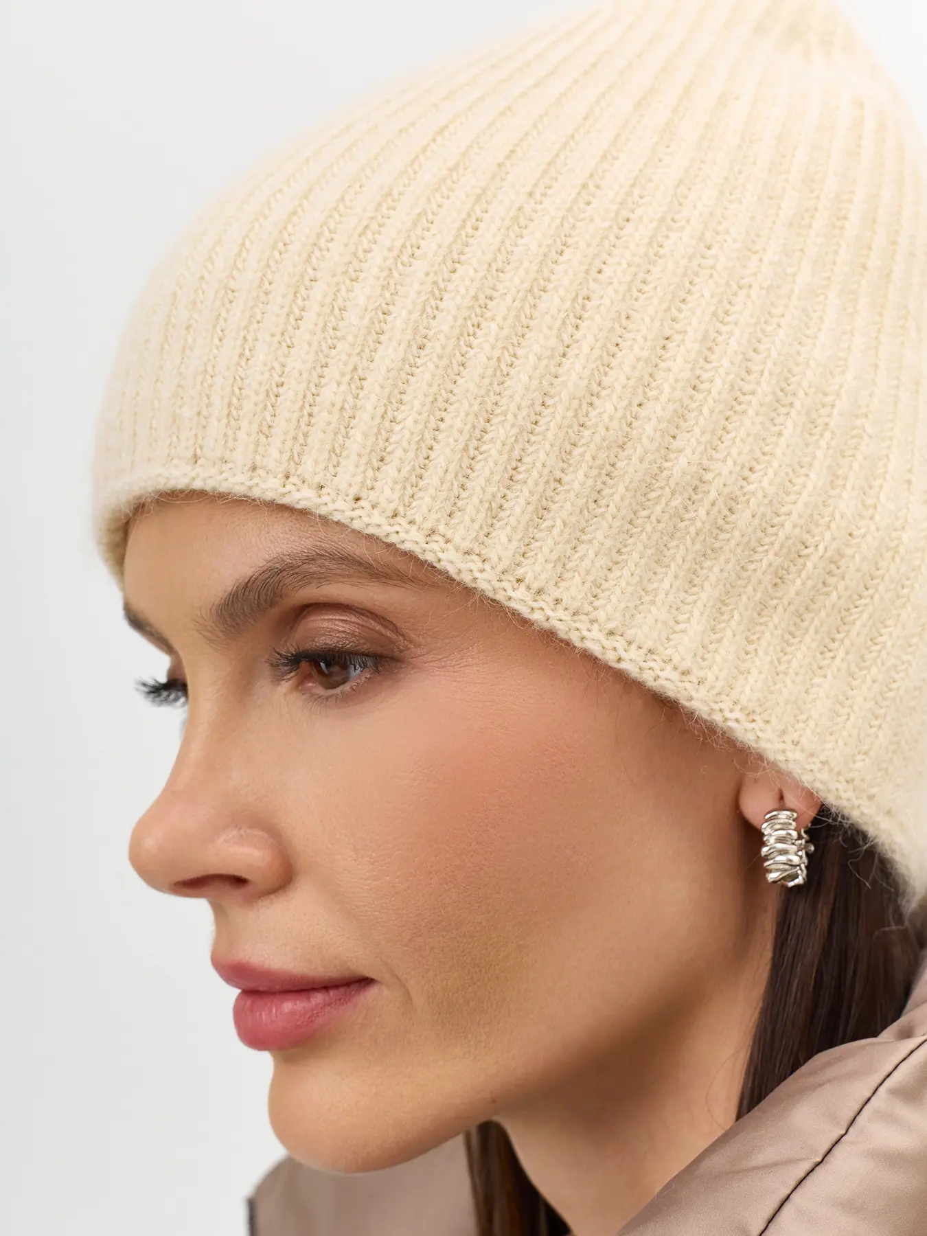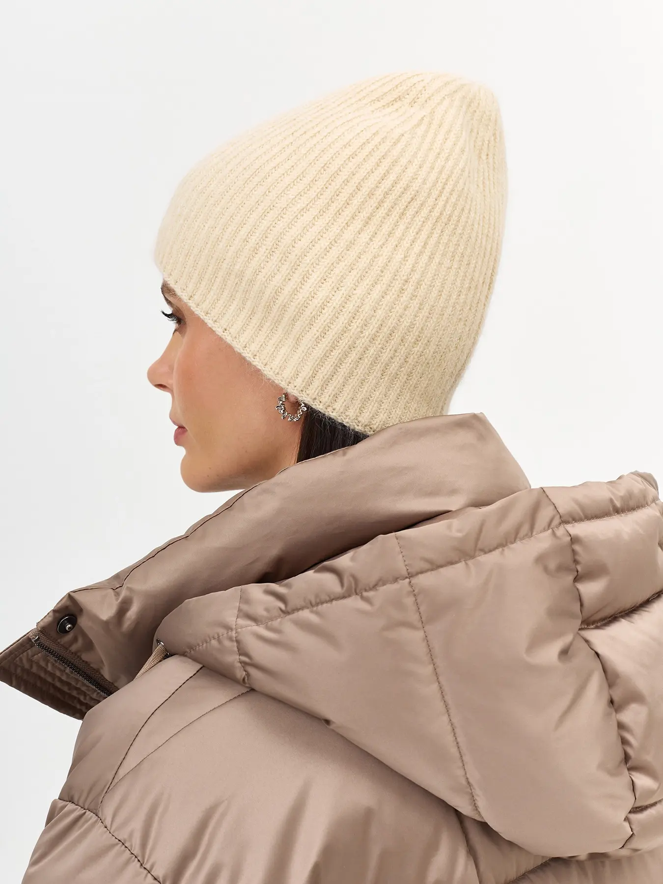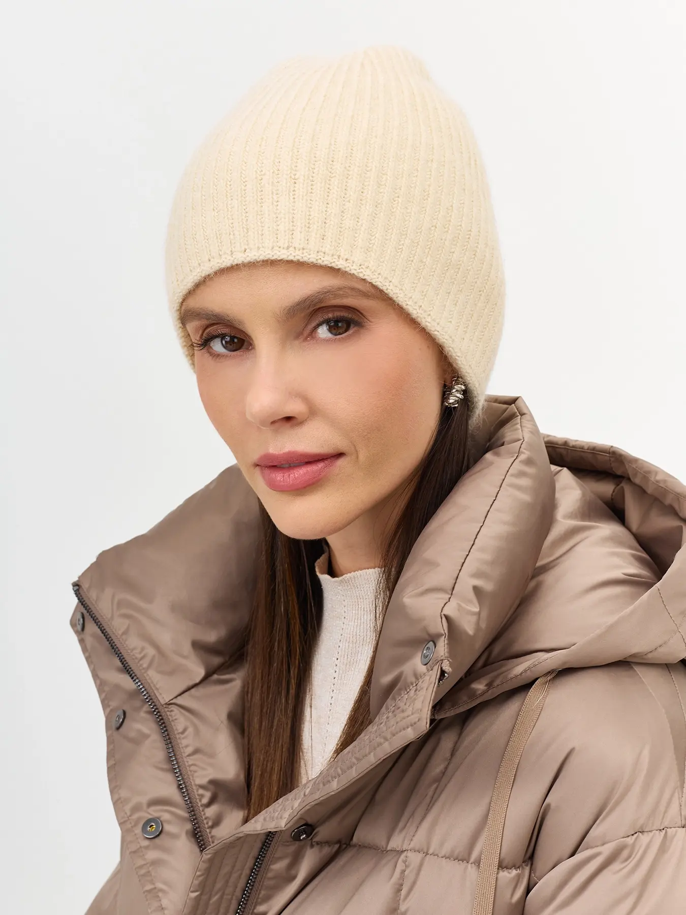 Тонкая трикотажная шапка в мелкий рубчик. Ангора и вискоза в составе.