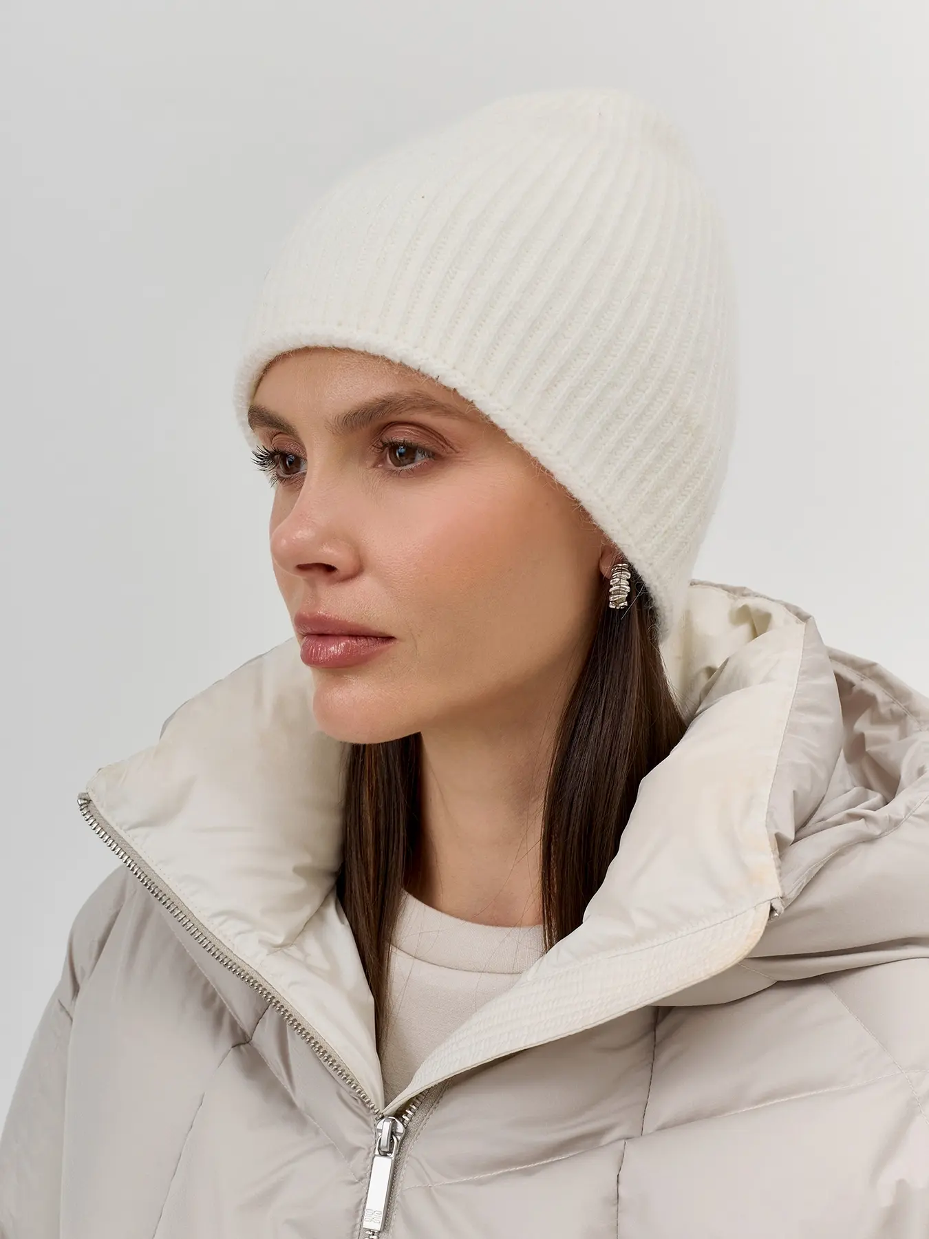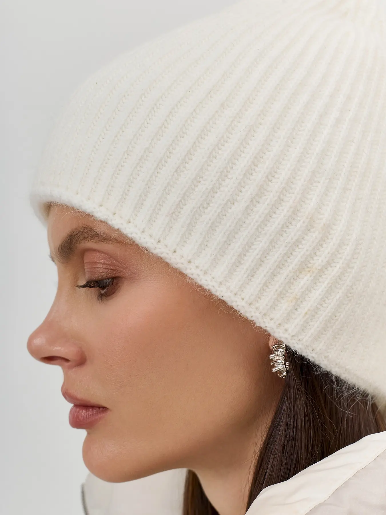 Тонкая трикотажная шапка в мелкий рубчик. Ангора и вискоза в составе.