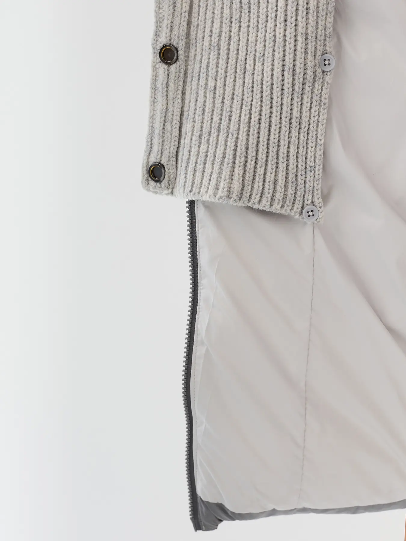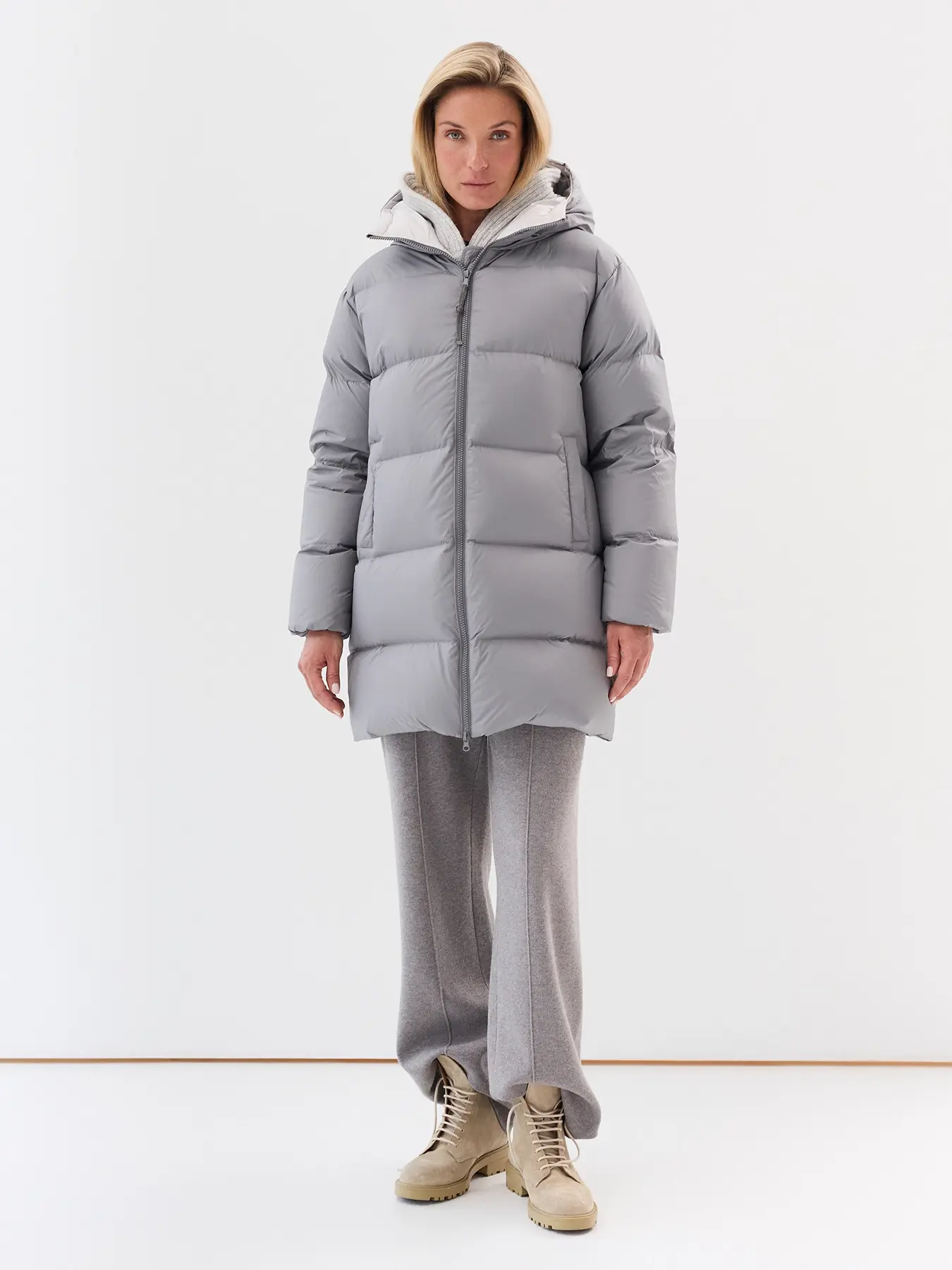 Удлиненная куртка на натуральном утеплителе. Съемная манишка. Боковые карманы с листочками. Прямой силуэт. Застежка молния. Воротник стойка.