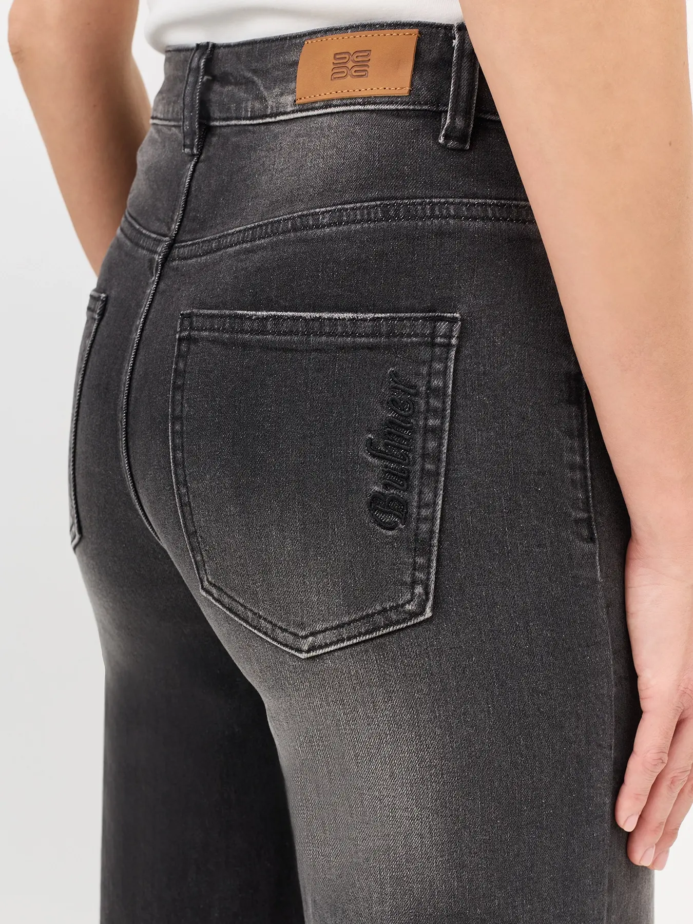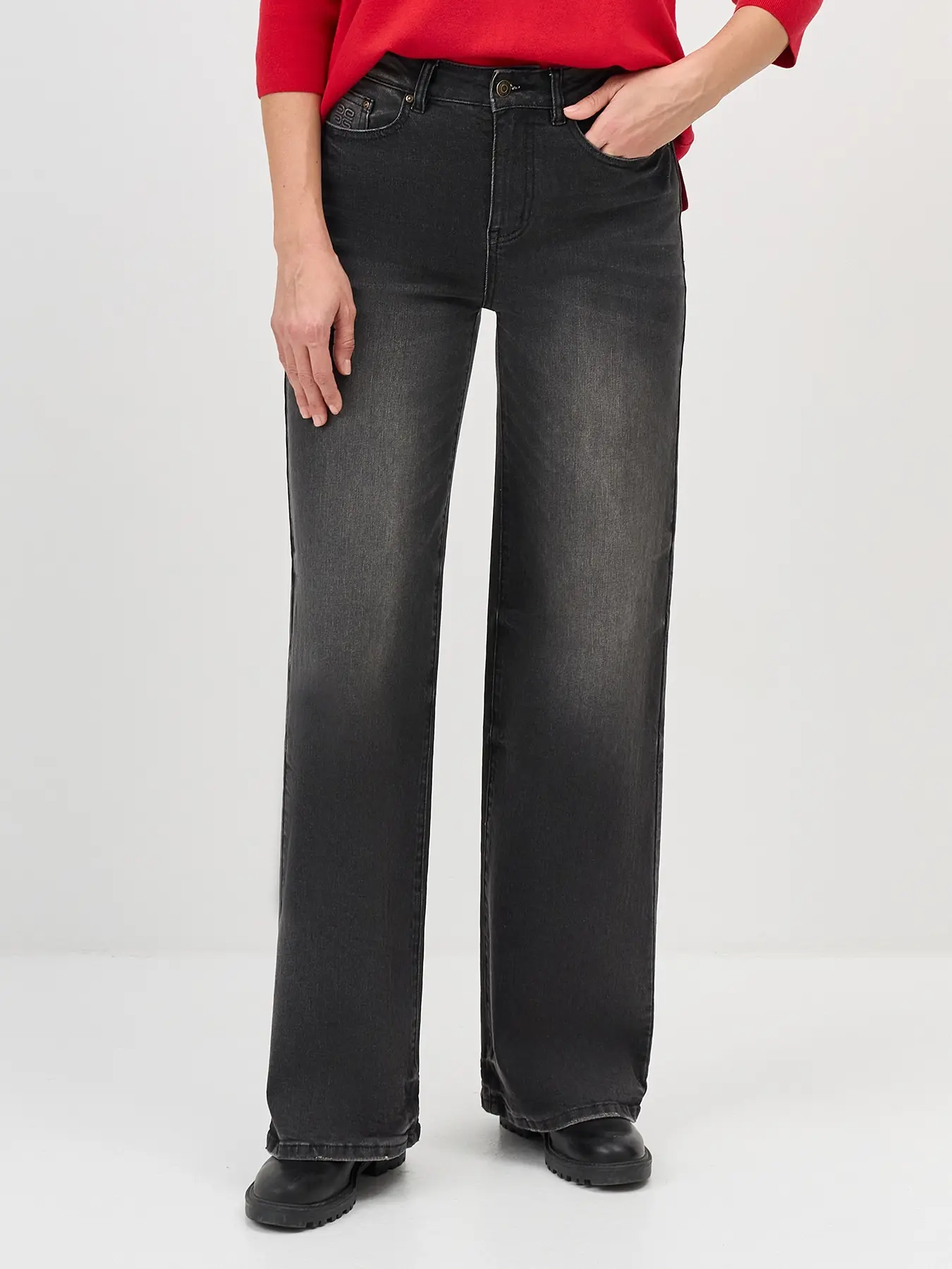 Прямого силуэта. Застежка молния и металлическая пуговица. Пять карманов. Дополнены деликатной варкой. В составе спандекс.