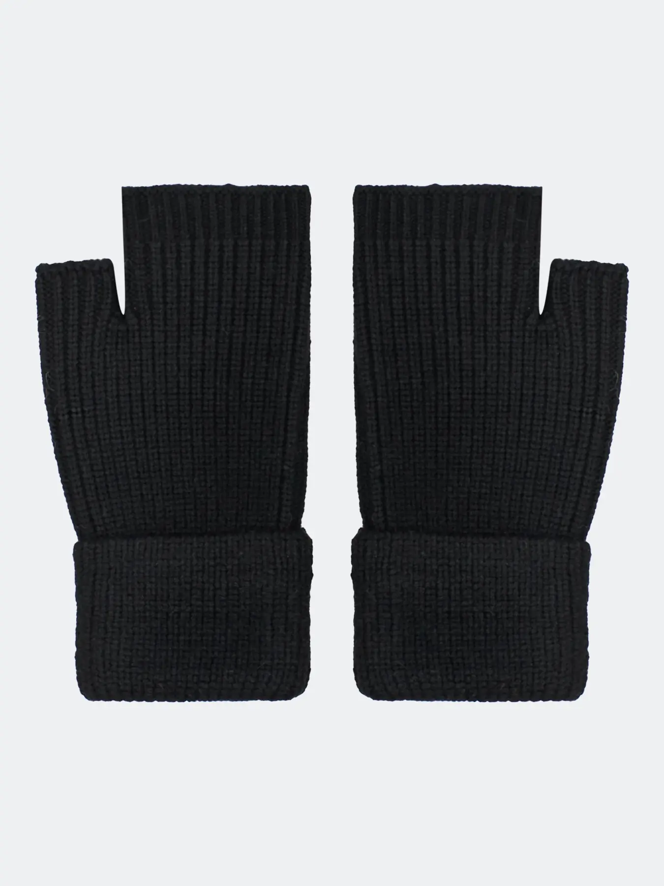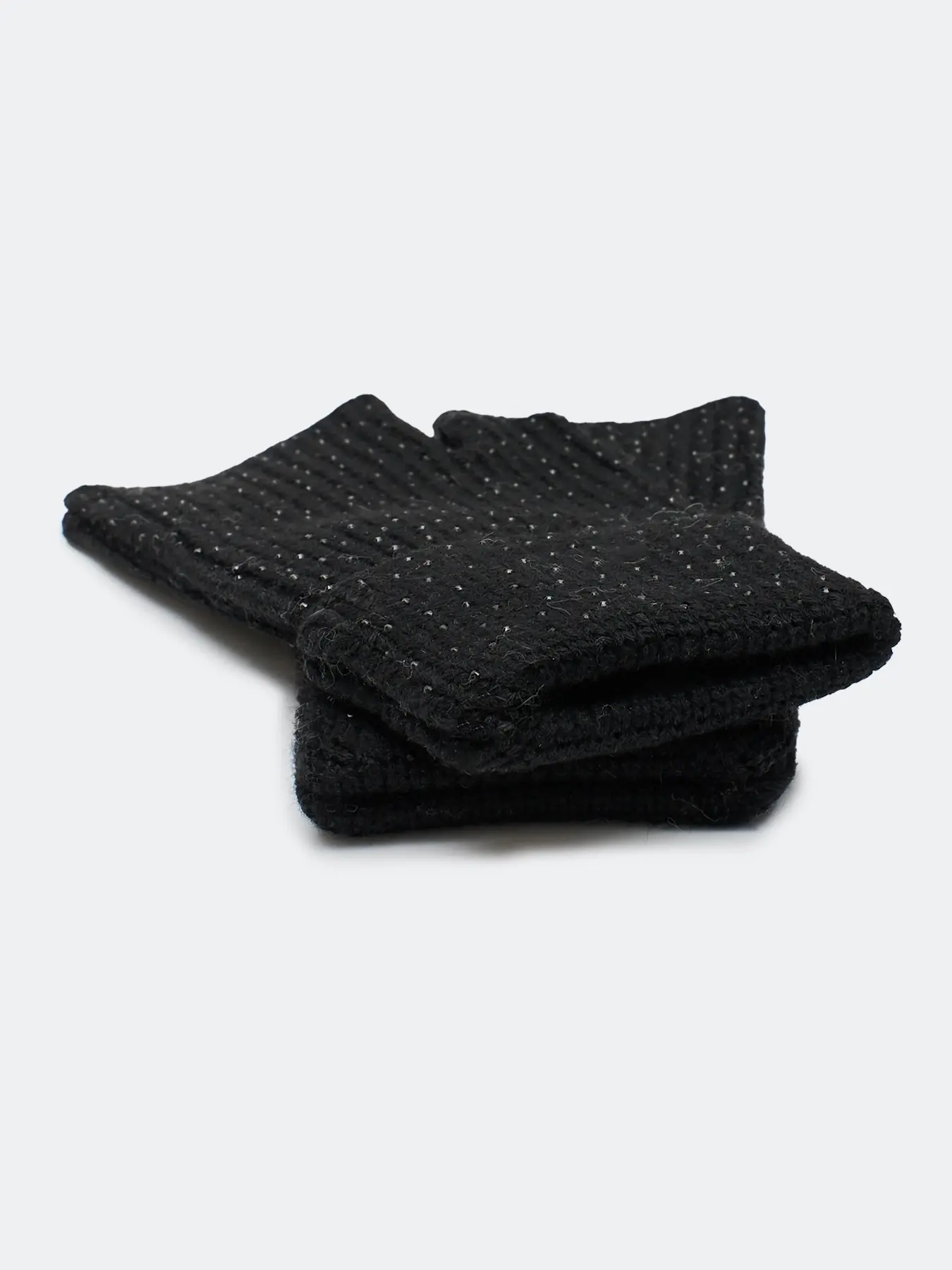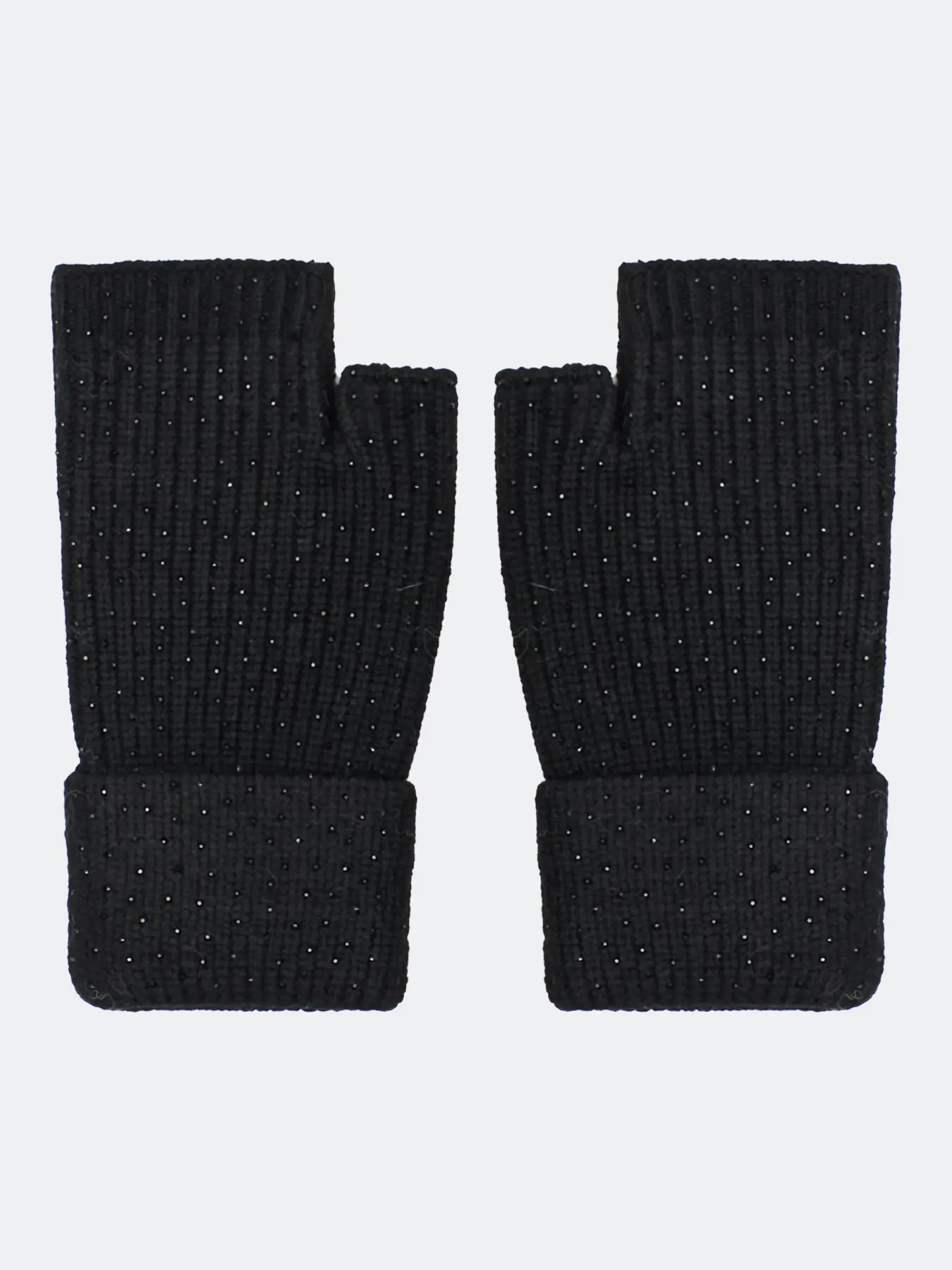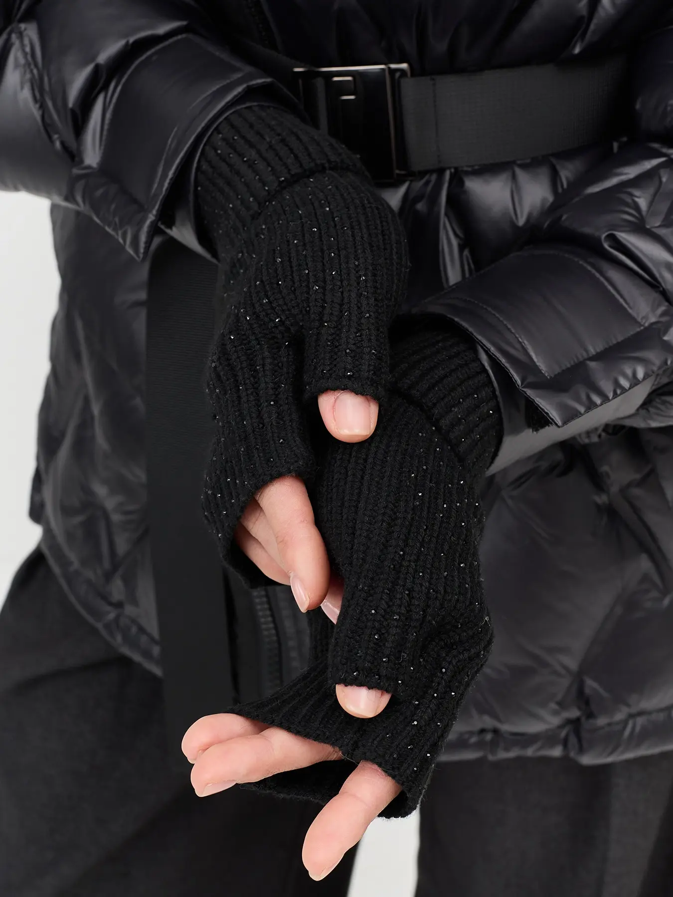 Вязаные варежки-митенки из пряжи с добавлением шерсти. Эластичные трикотажные манжеты и резинка вокруг пальцев. Украшены деликатными бусинками.