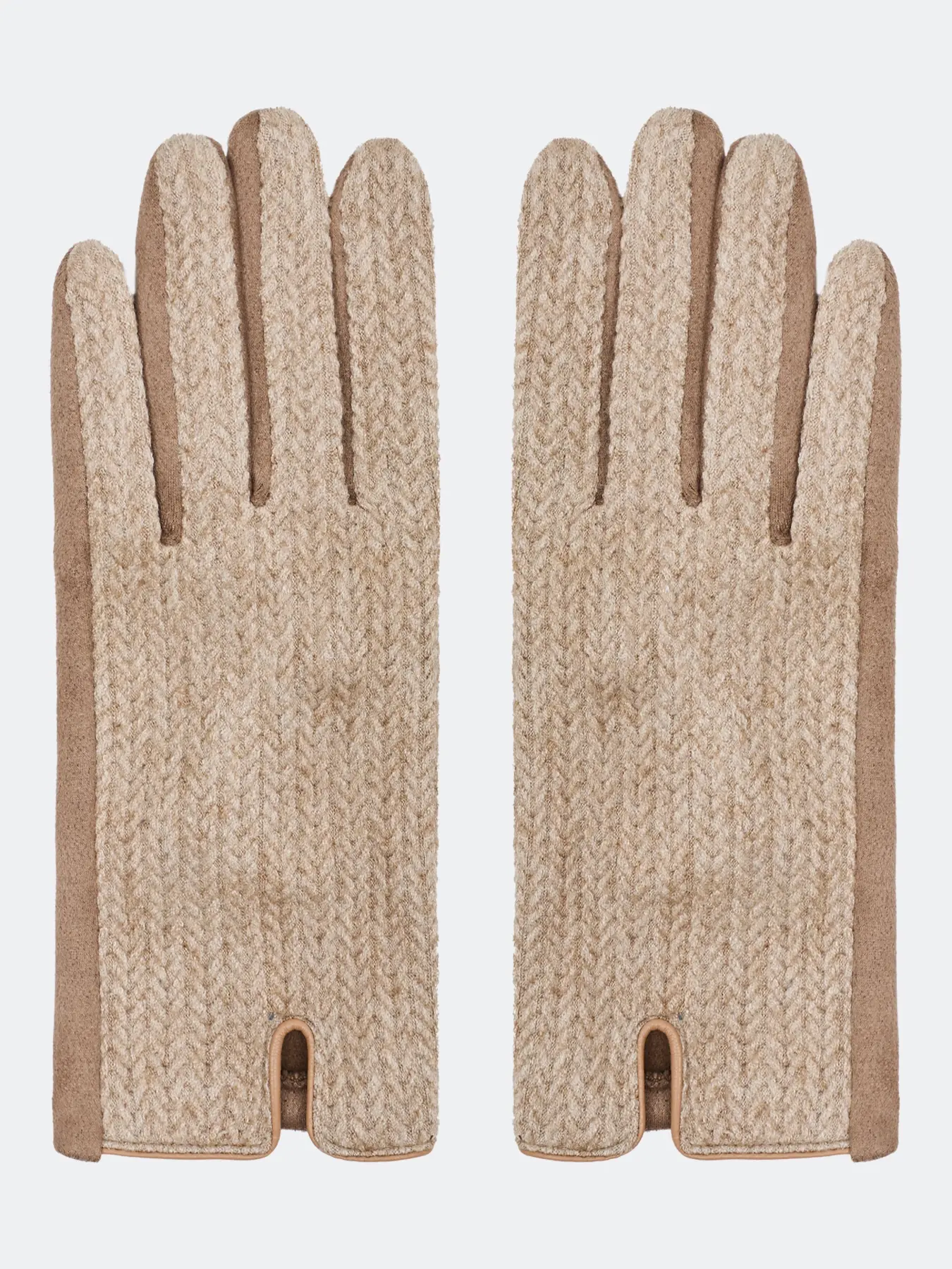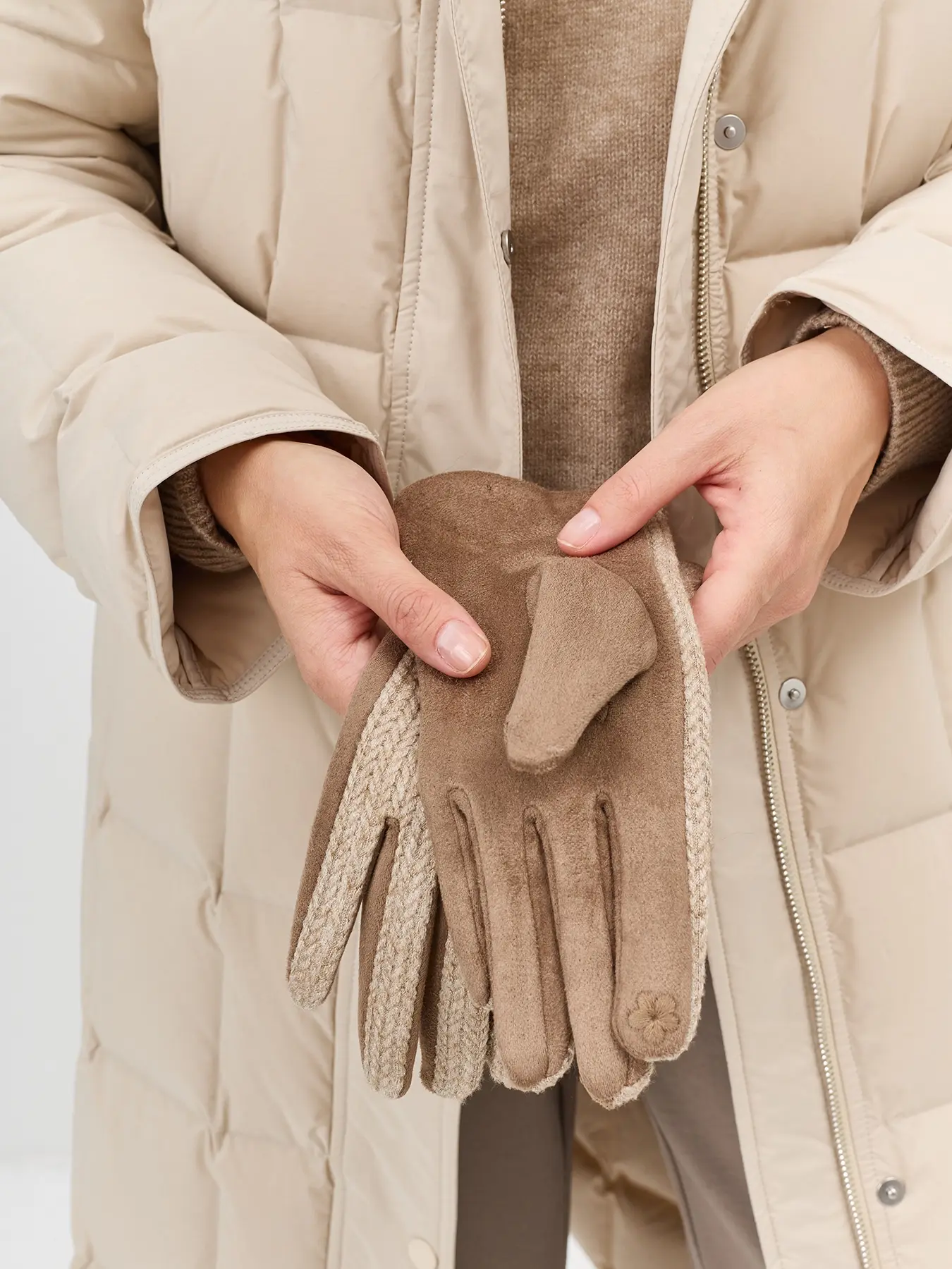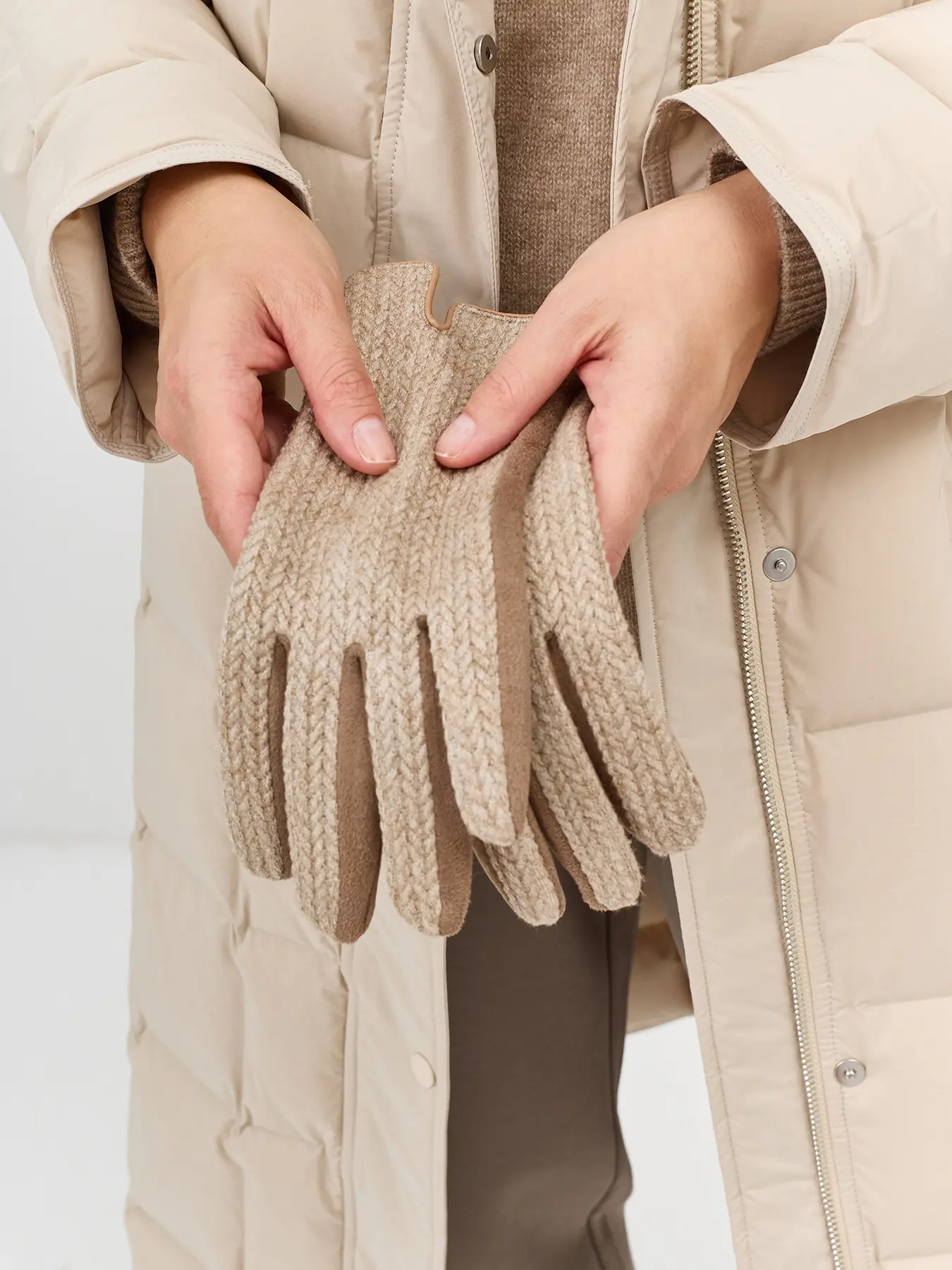 Комбинированные перчатки с имитацией вязаного полотна с внешней стороны. Внутренняя сторона из искусственной замши. Декоративные разрезы. Теплая текстильная подкладка. Используется технология iTouch, она создана специально для работы с сенсорными экранами. Благодаря этому не нужно снимать перчатки , чтобы ответить на звонок или написать сообщение.