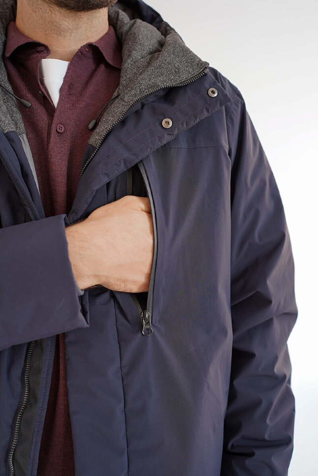 Максвелл - непромокаемая пуховая парка от +5°С до -25°С. Модель из мембранной ткани, с проклеенными швами и гидрофобной пропиткой пуха. Предназначена для использования как при положительной, так и при отрицательной температуре. Выдерживает любые виды осадков: снег, дождь, мокрый снег. Не промокает и дышит.