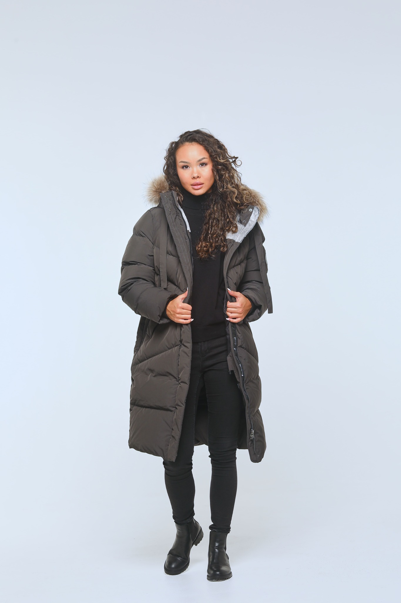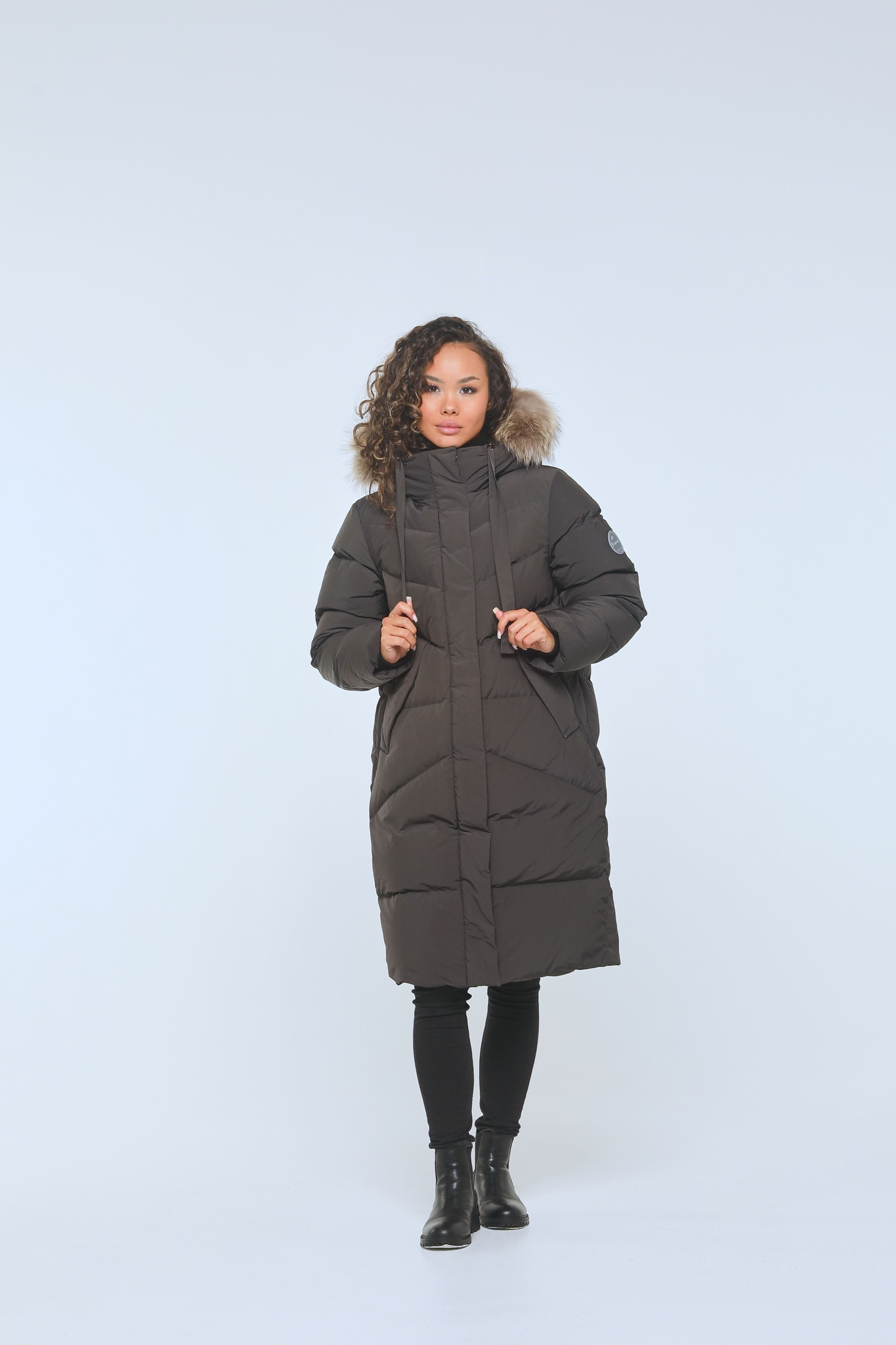 Юкка — это элегантное женское пуховое пальто О-силуэта до -40°С.