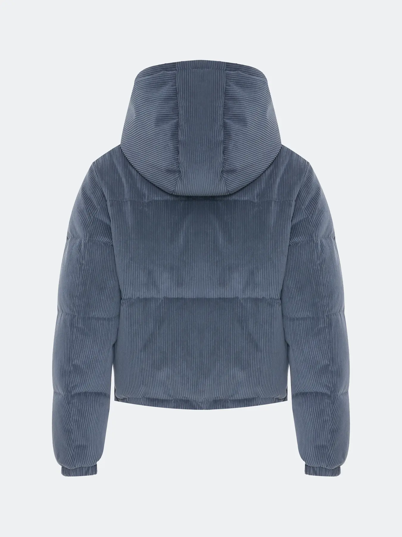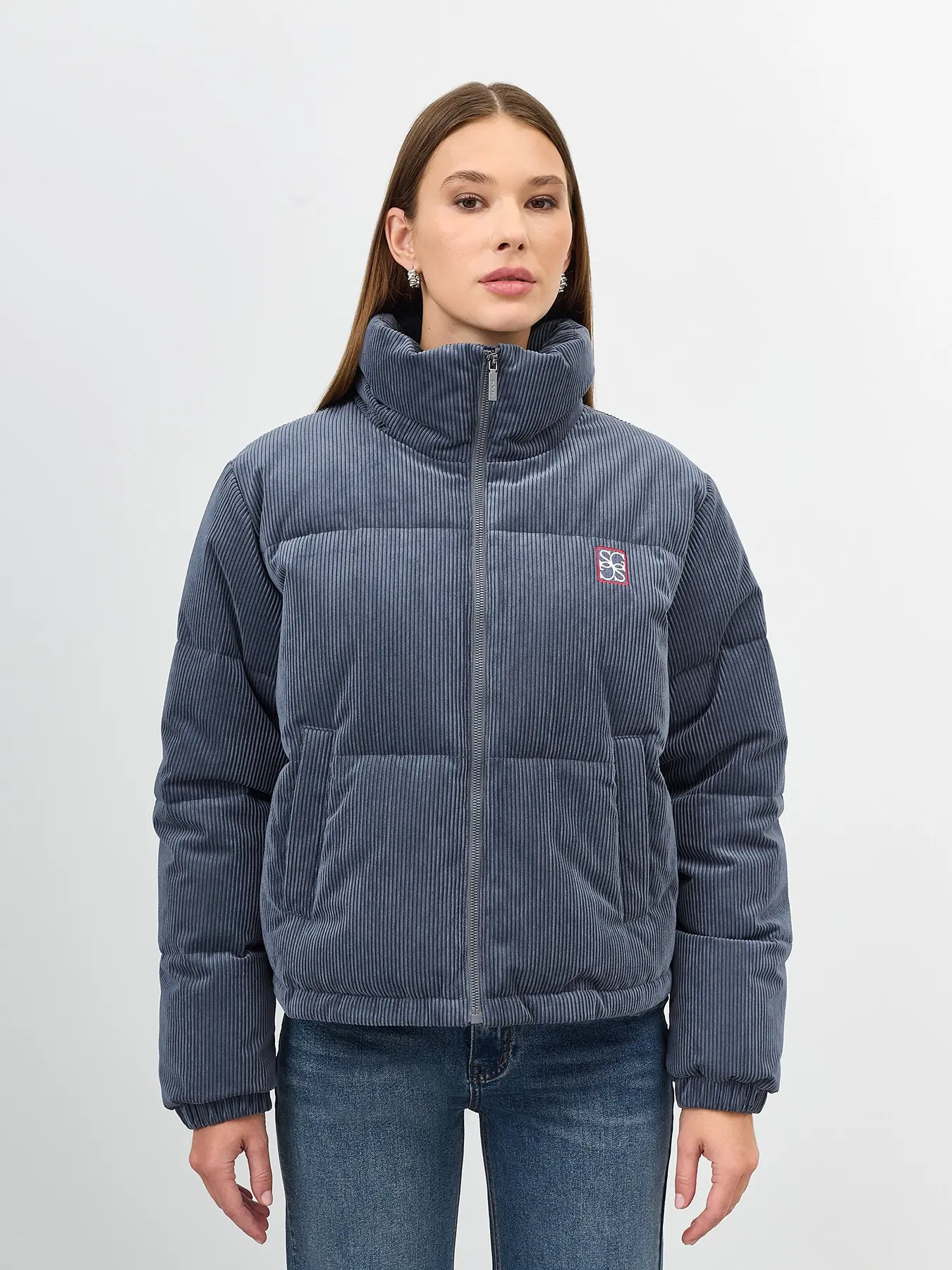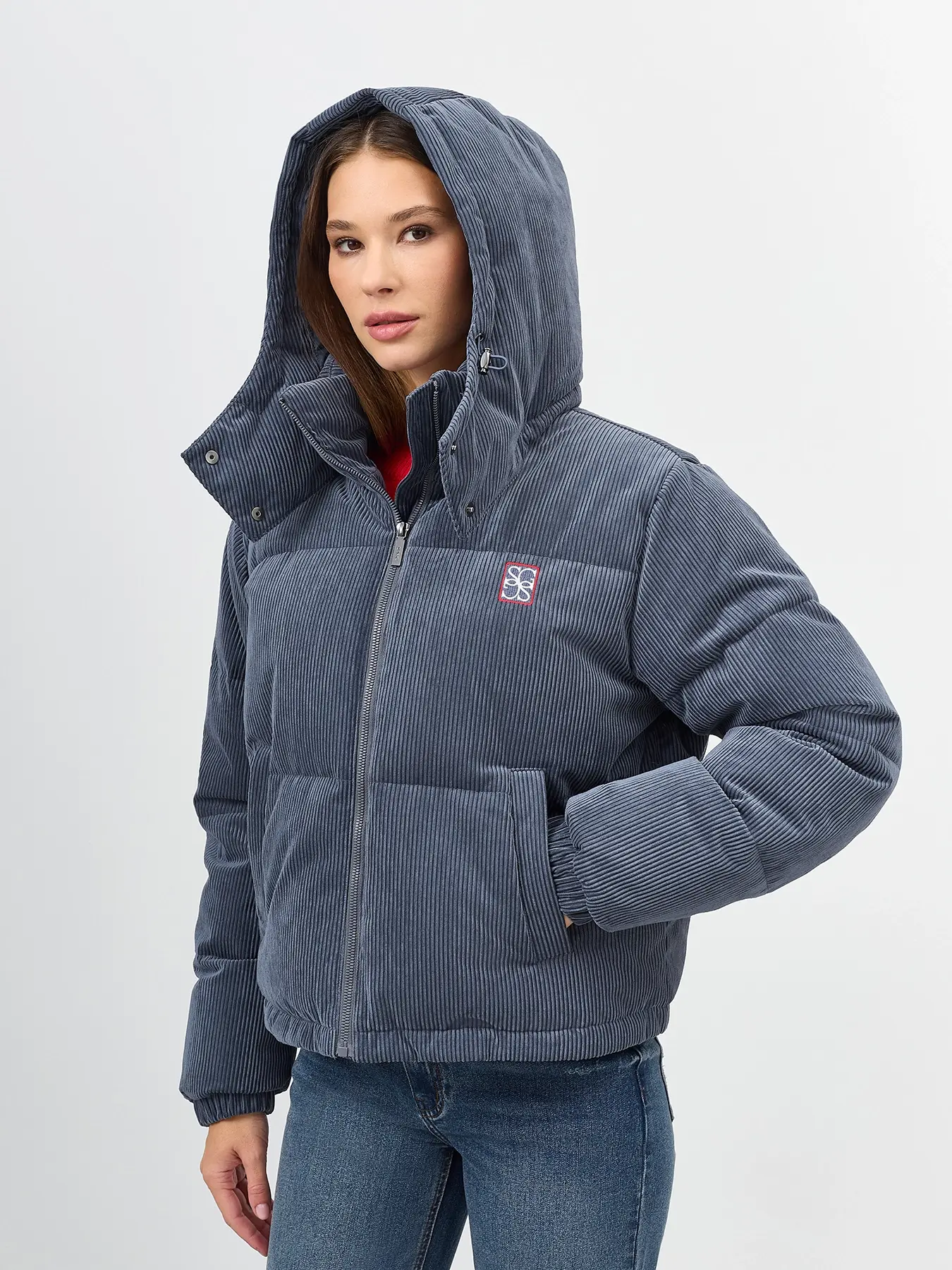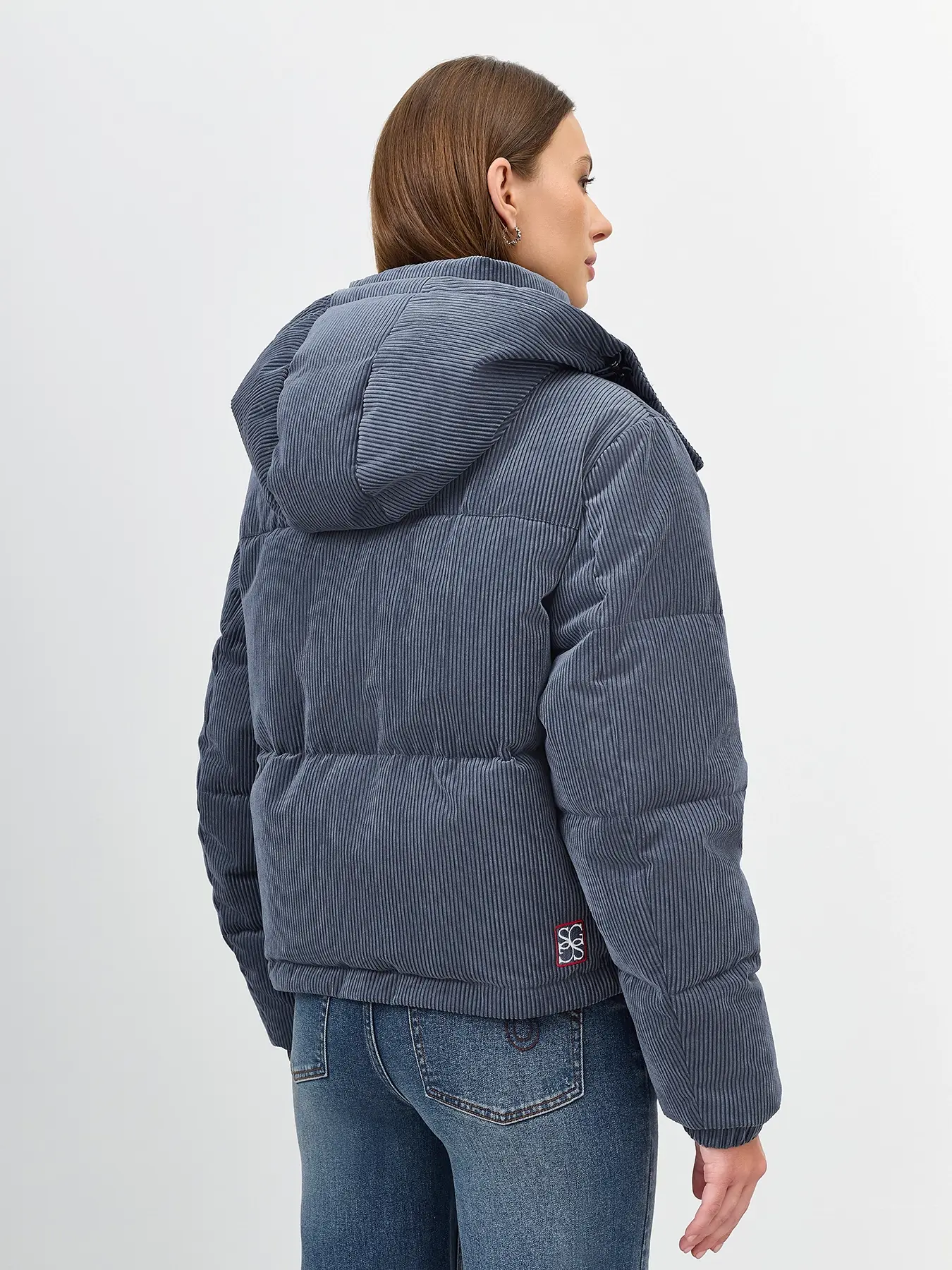 Вельветовая куртка с деликатной варкой. Свободный силуэт. Воротник стойка дополнен съемным капюшоном на кнопках с утяжниками. Застежка на молнию. Боковые карманы с листочками. Резинки по низу рукавов. Утяжники по низу изделия для защиты от ветра. Дополнена контрастной вышивкой.