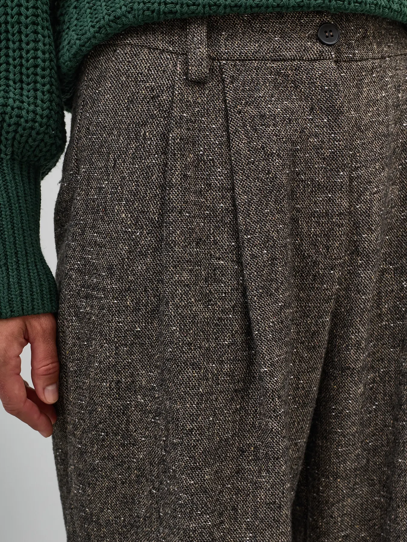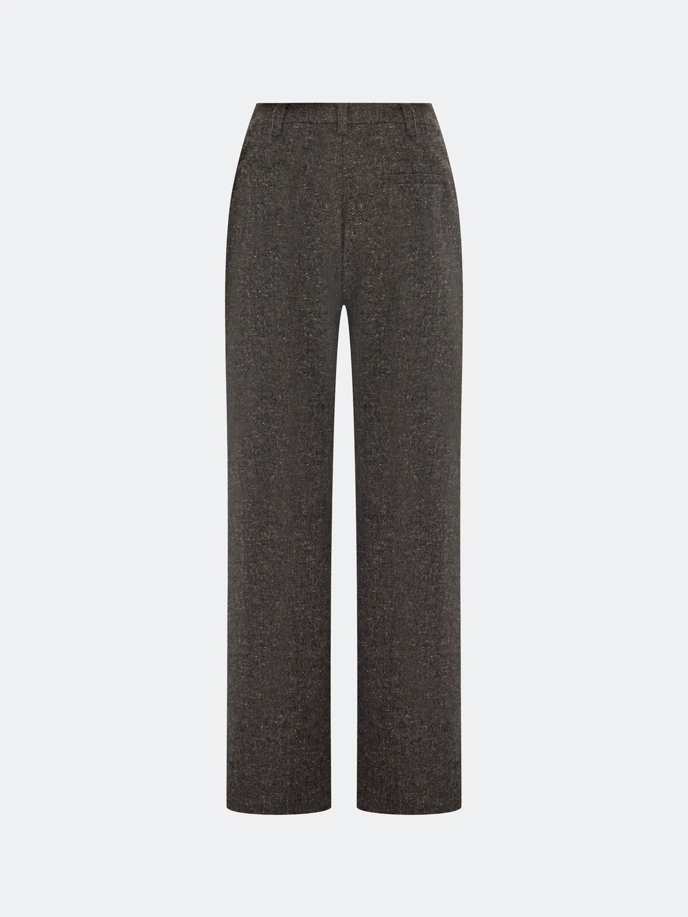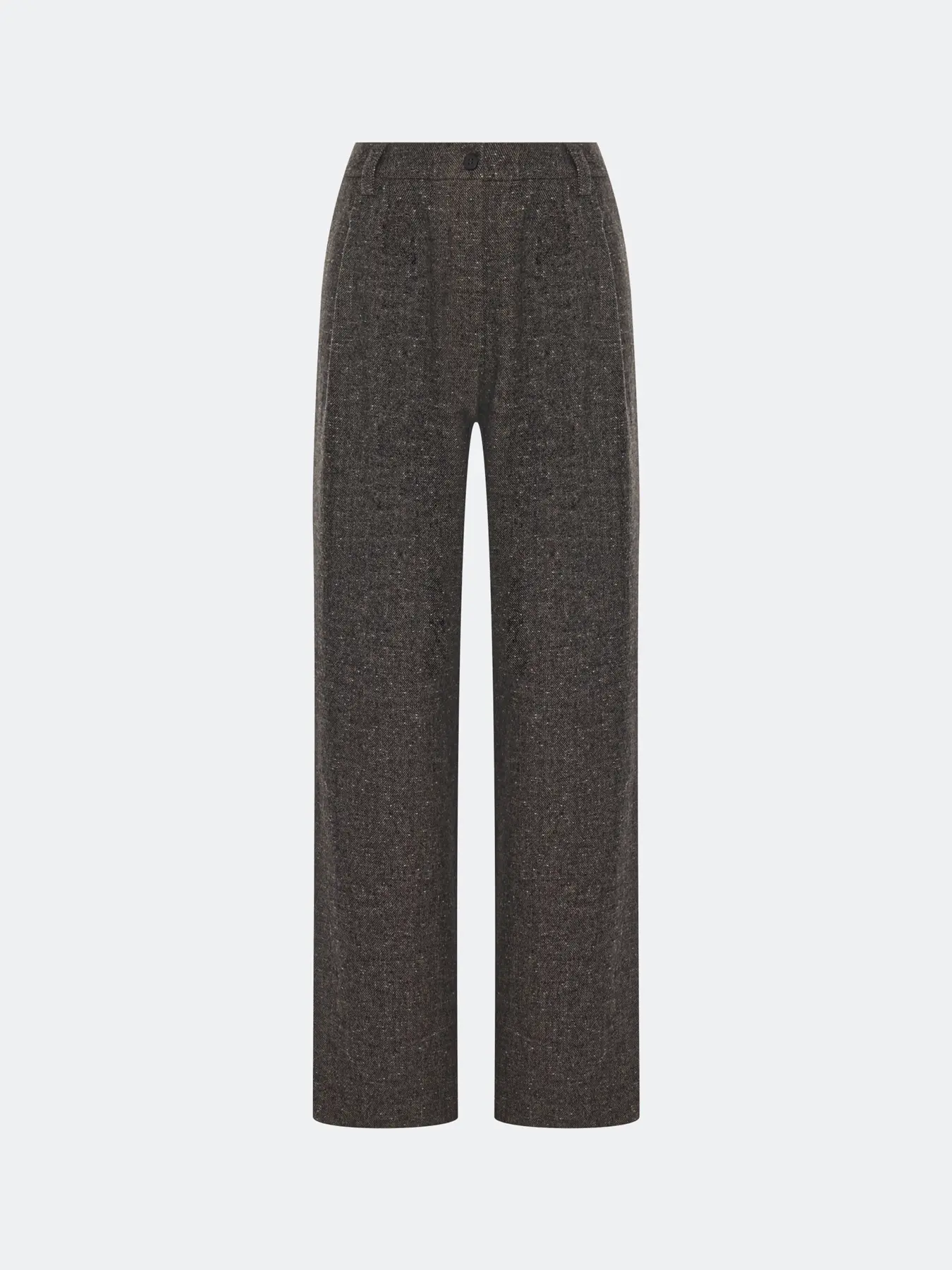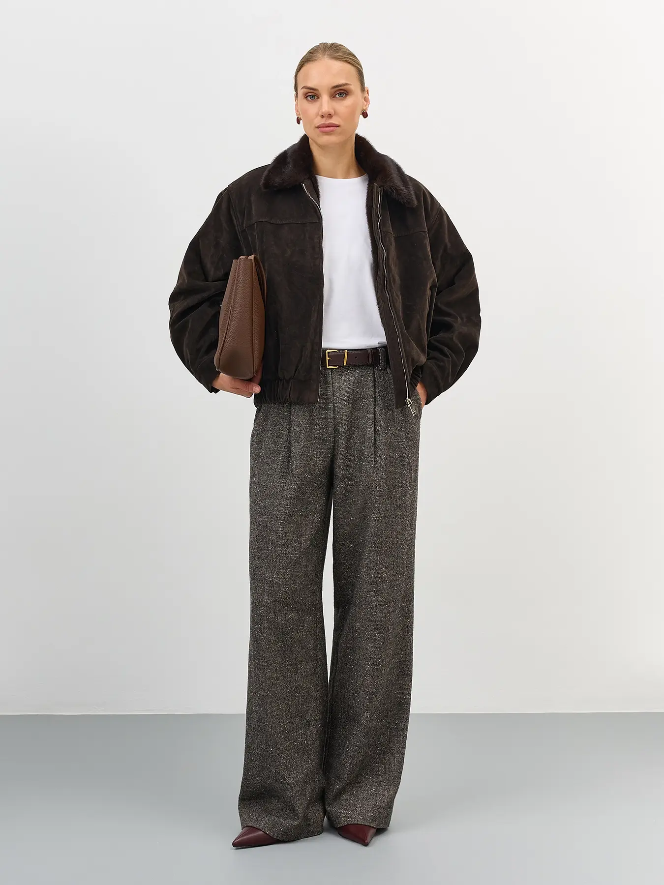Брюки палаццо с защипами-складками из ткани с эффектом букле. Свободный силуэт. Застежка на молнию и пуговицу. Боковые карманы в швах.