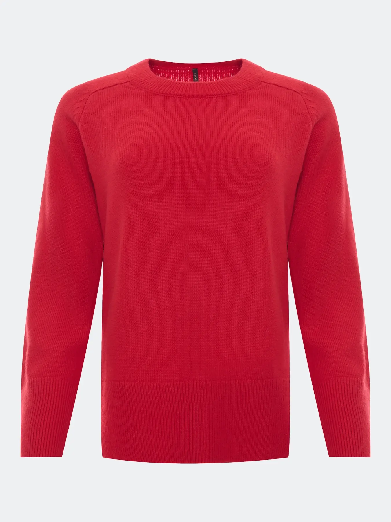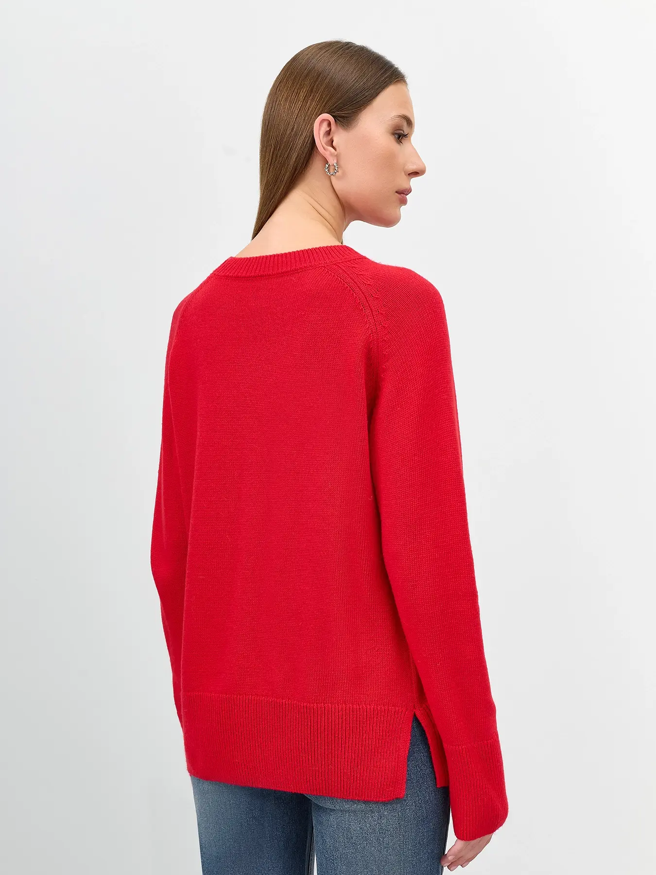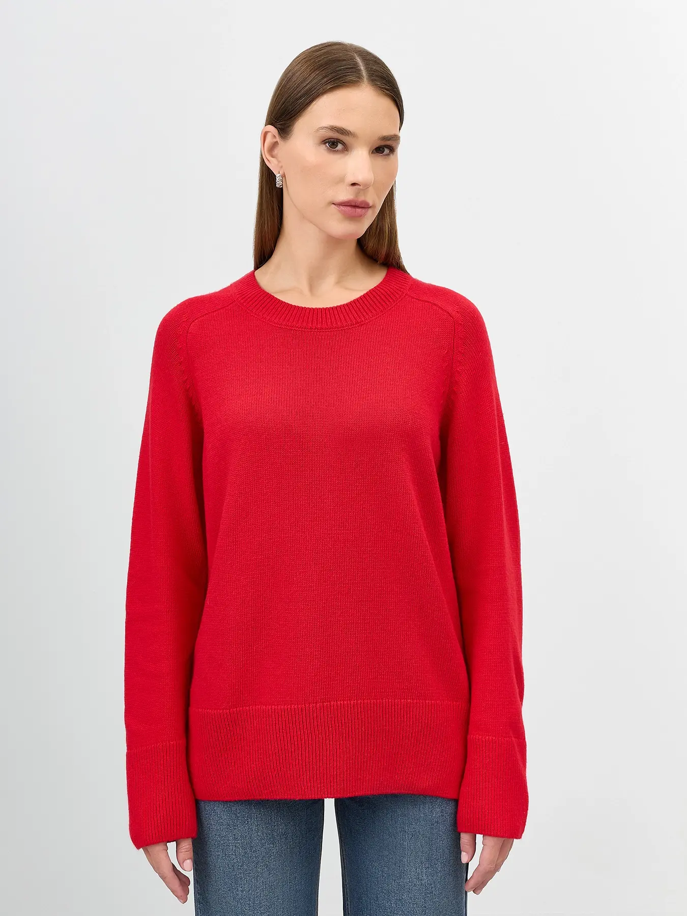 Яркий джемпер с ангорой в составе. Прямой силуэт. Круглый вырез. Длинные рукава реглан. Боковые разрезы в швах. Широкие манжеты по низу рукавов и изделия.