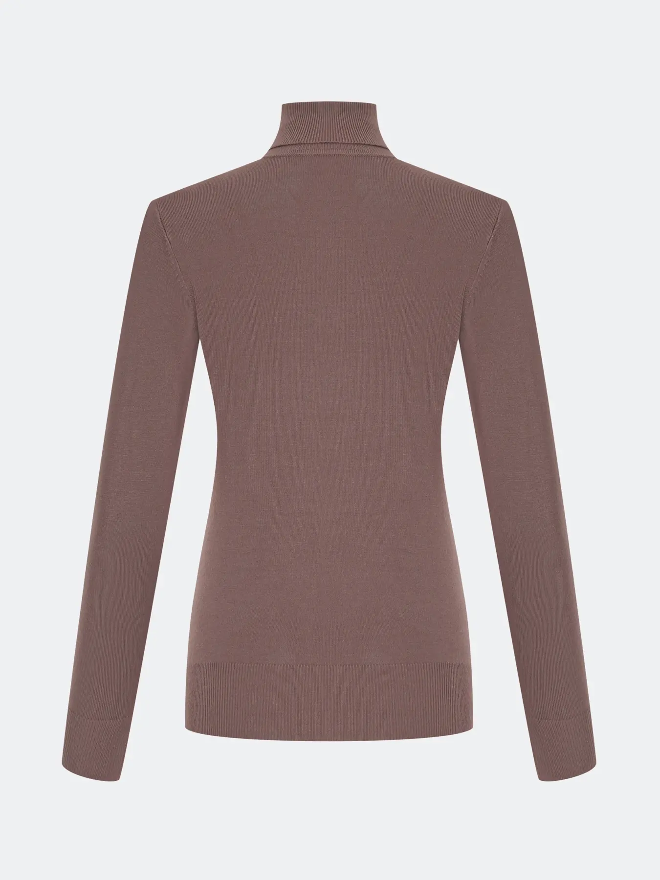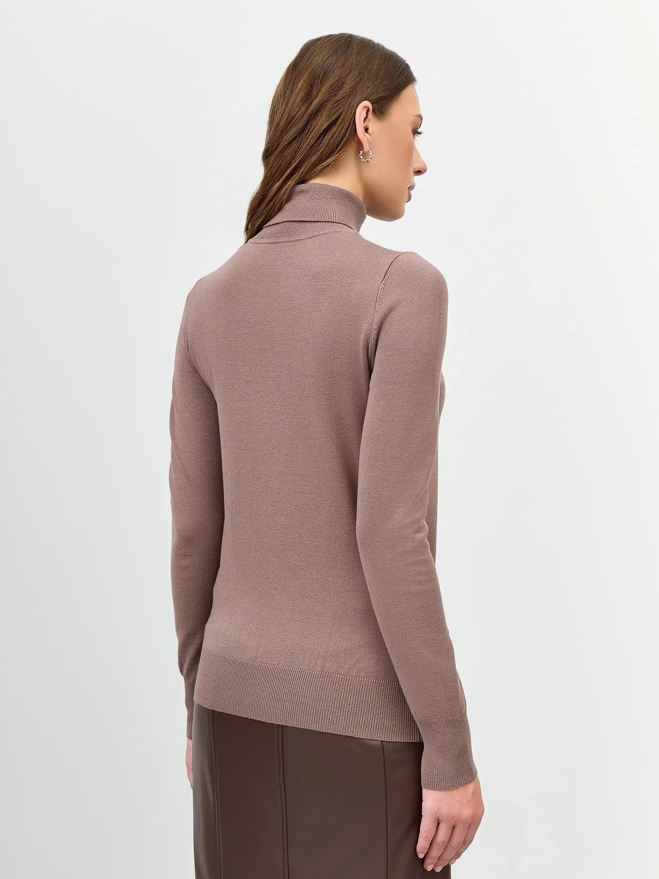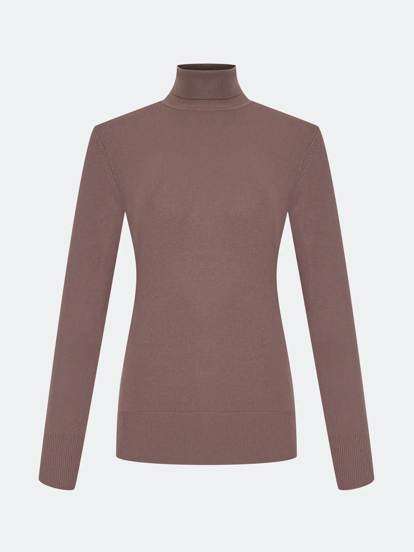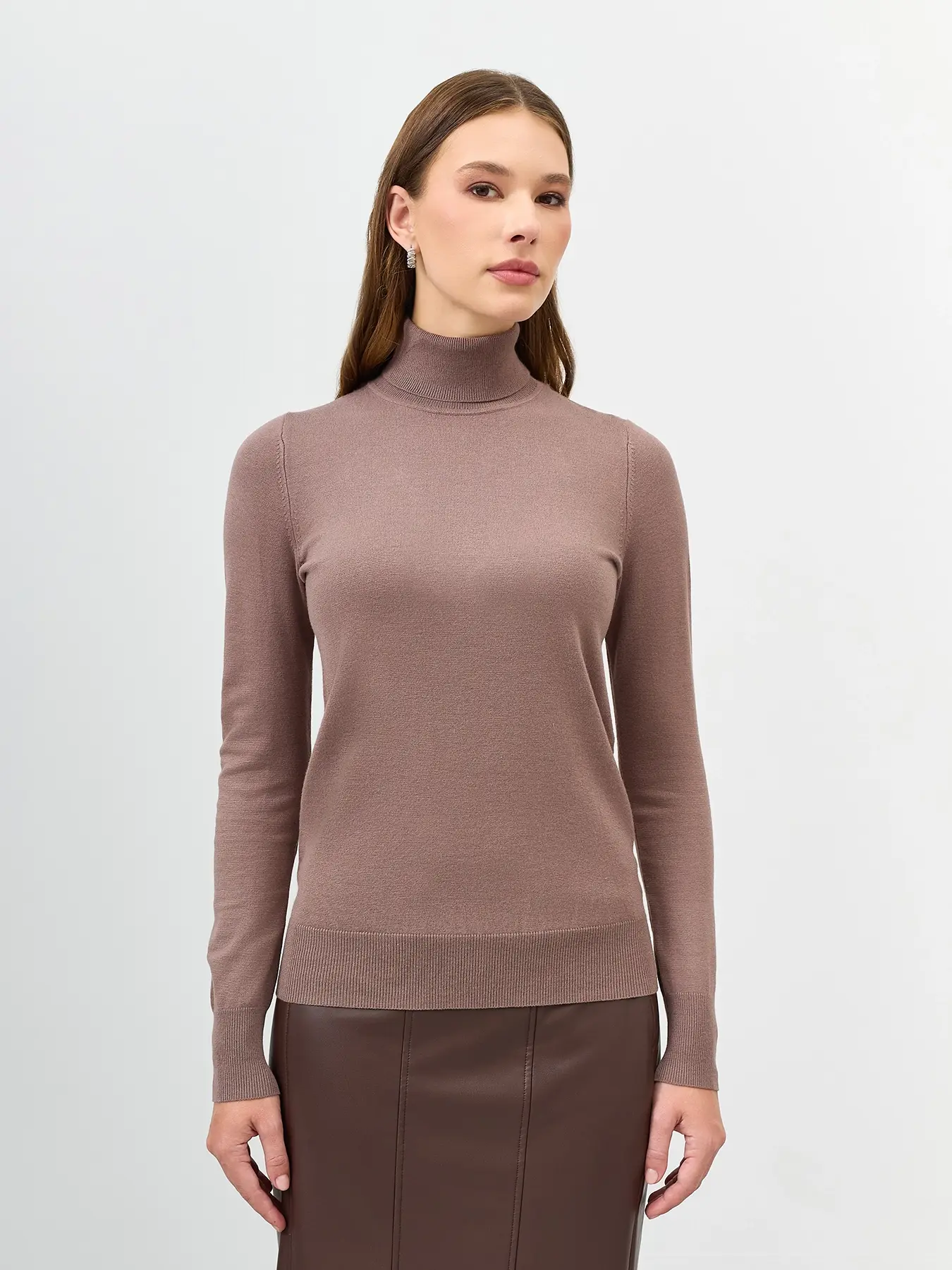 Базовая водолазка из смесовой вискозы и нейлона. Прилегающий силуэт. Высокий воротник стойка. Манжеты по низу рукавов и изделия.