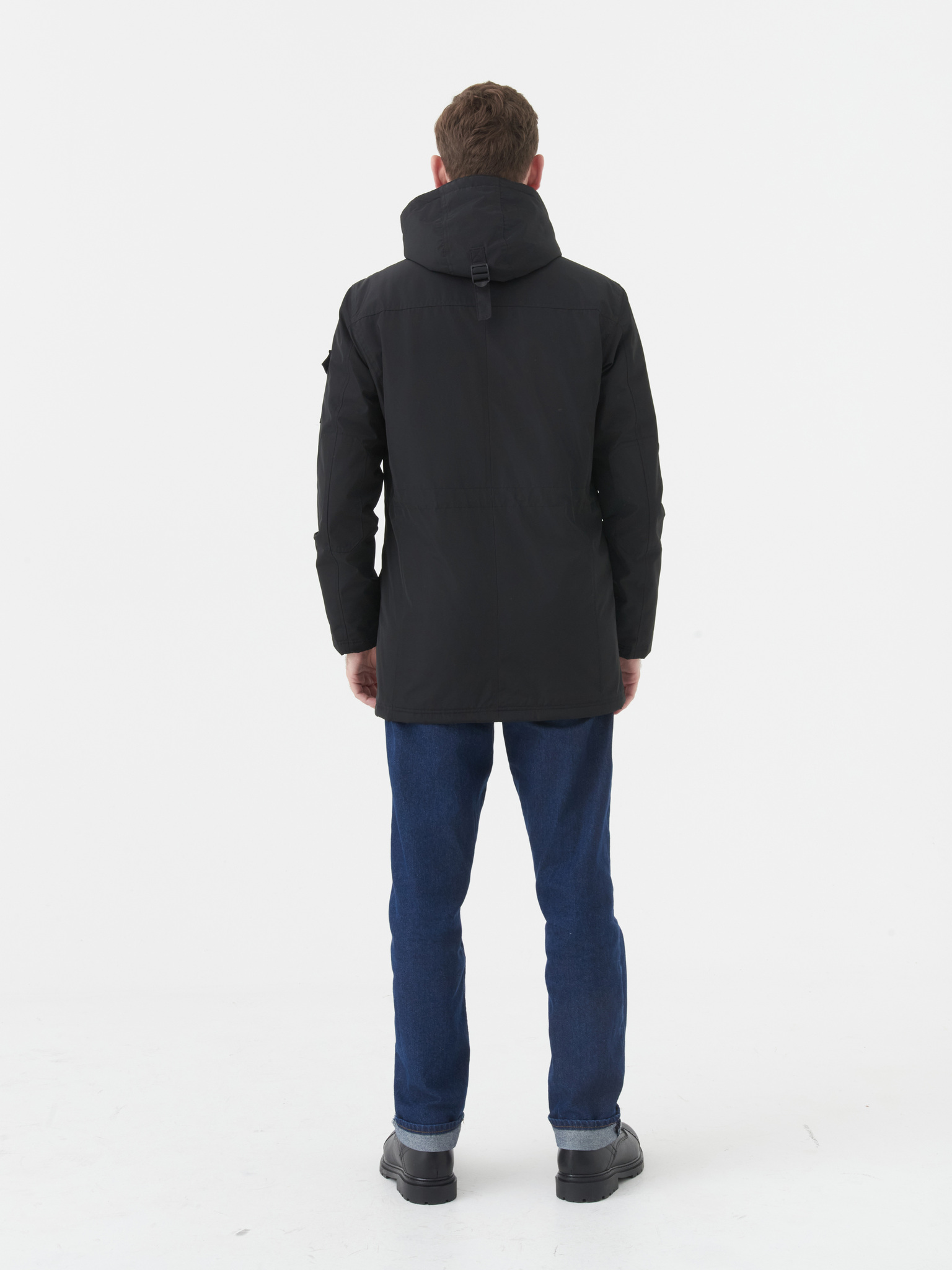 Мужская куртка в классическом черном цвете — идеальное сочетание стиля и функциональности для повседневной носки. Модель выполнена из прочного материала, обеспечивающего защиту от ветра. Практичный капюшон и высокий воротник надежно сохраняют тепло в холодную погоду. Удобные карманы на молниях позволяют безопасно хранить необходимые вещи. Куртка имеет прямой силуэт, что обеспечивает комфорт и свободу движений. Отличный выбор для тех, кто ценит качество и современный дизайн в холодное время года.