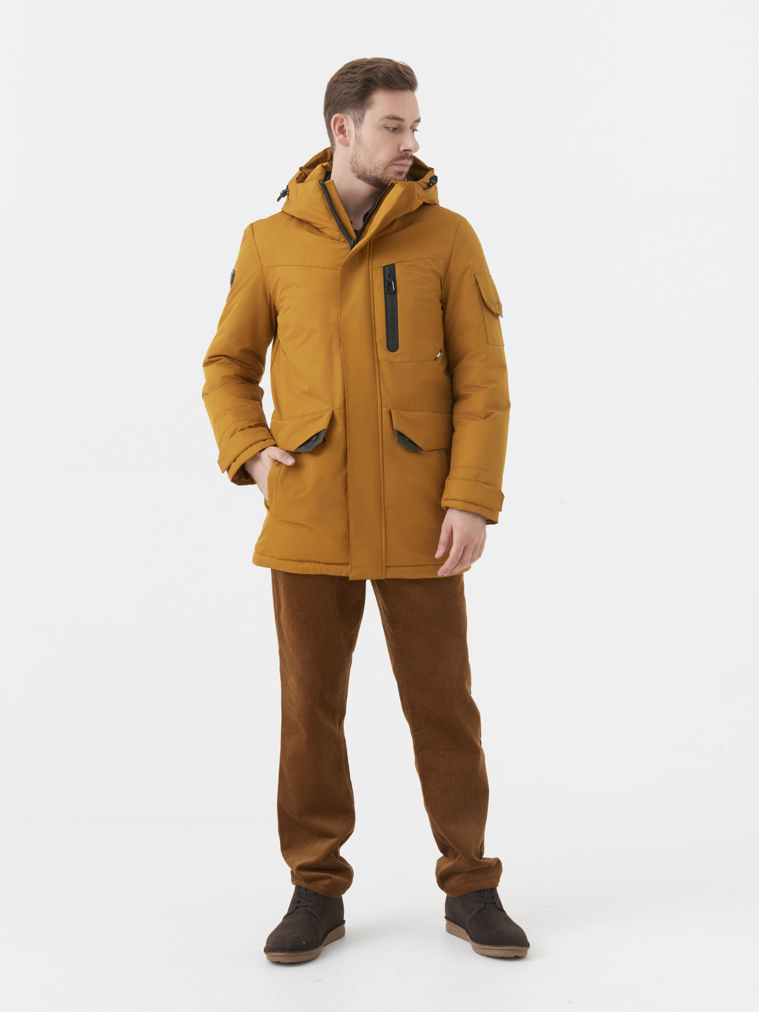 Мужская зимняя куртка насыщенного горчичного цвета — идеальный выбор для тех, кто ценит стиль и комфорт в холодное время года. Модель изготовлена из высококачественного материала, который надежно защищает от ветра. Удобный капюшон обеспечивает дополнительную защиту от непогоды. Практичные карманы на молниях и клапанах позволяют хранить необходимые мелочи под рукой. Куртка имеет прямой силуэт и регулируемые манжеты, что обеспечивает комфорт и свободу движений. Этот яркий образ отлично дополнит ваш повседневный гардероб.