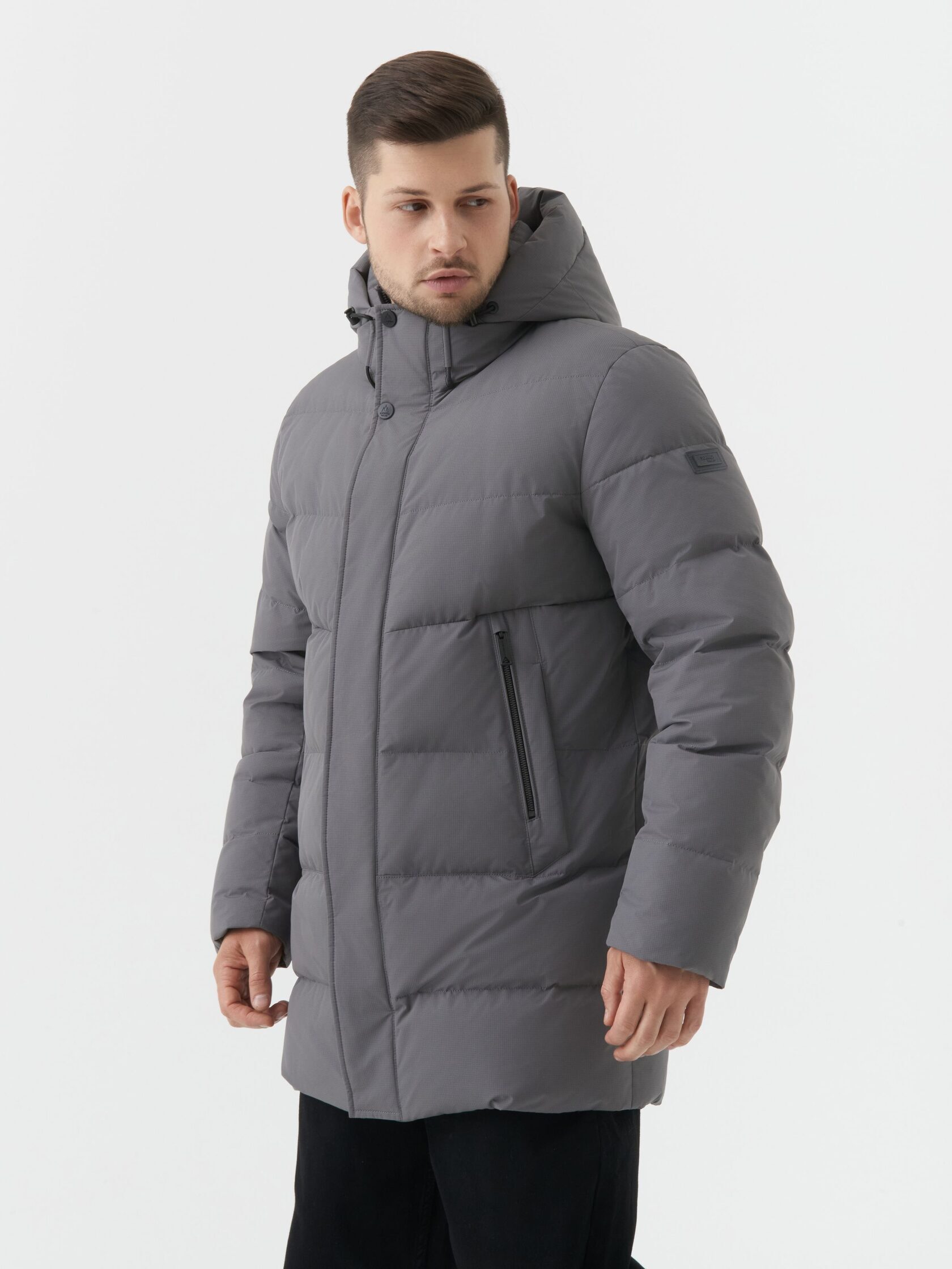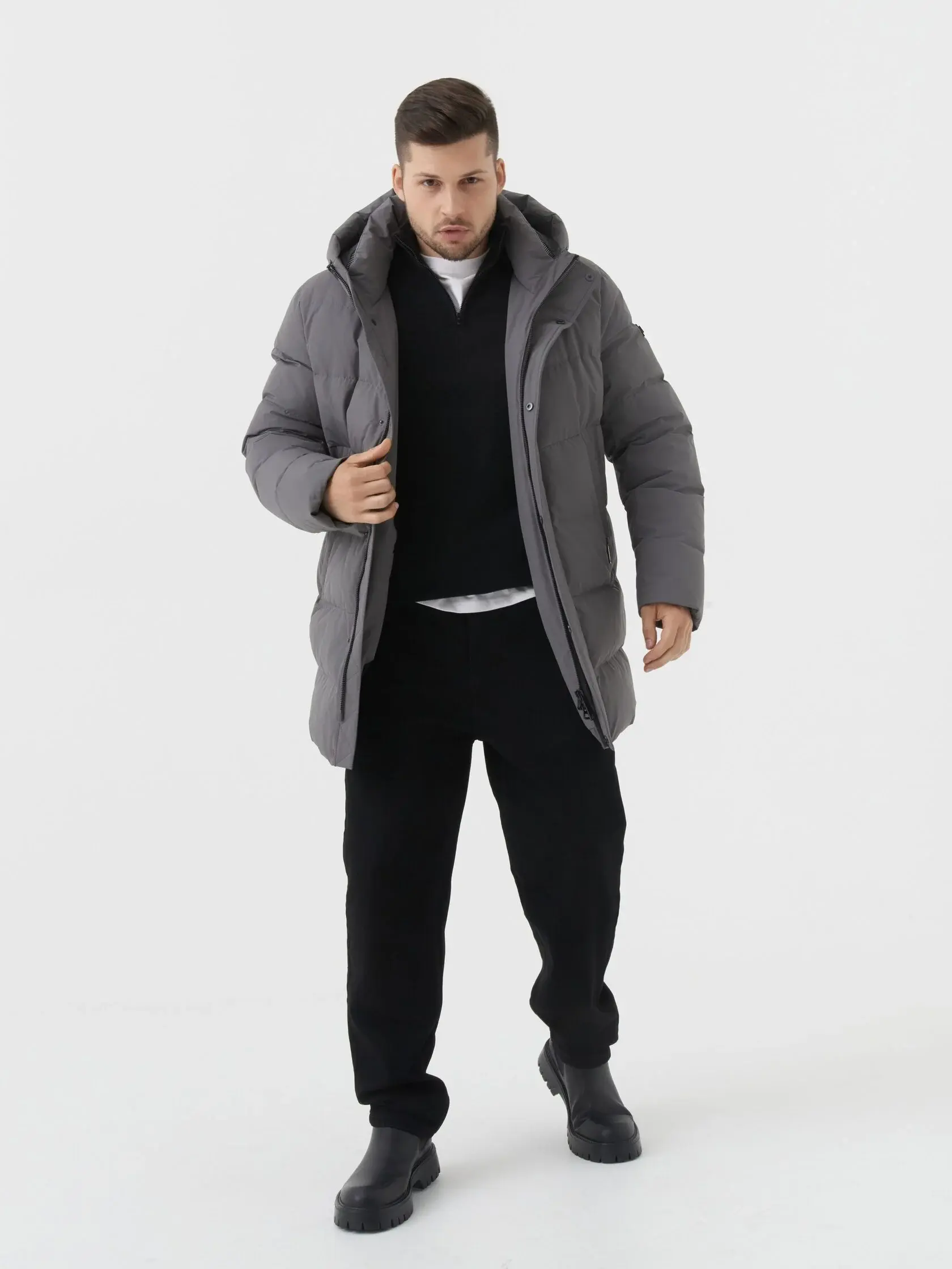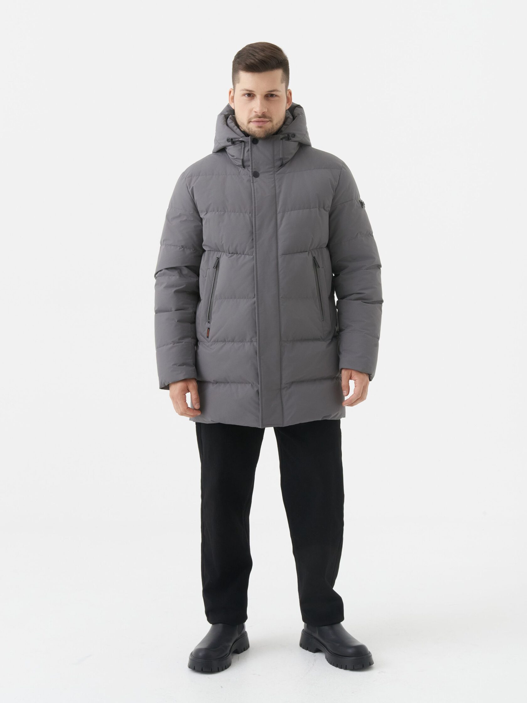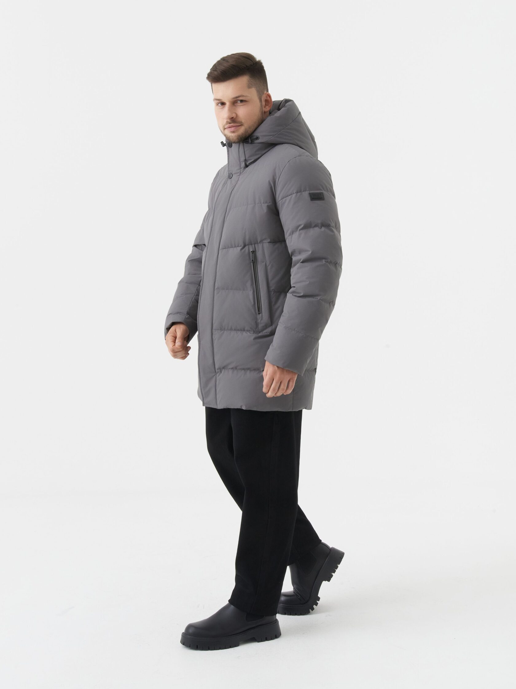 Надёжный спутник в холодную погоду: серая утепленная куртка, сочетающая практичность и сдержанную элегантность. Её прямой крой и средняя длина создают комфортный силуэт, идеально подходящий для городской жизни. Объёмный капюшон с регулировкой по объёму защищает от ветра и снега, а два боковых кармана на молниях обеспечивают безопасное хранение мелочей. Материал с тонкой фактурой выглядит дорого и износостойко, а контрастные детали - чёрная планка-молния, кнопки и нашивка на рукаве - добавляют образу современной строгости. Лёгкая, но тёплая куртка, станет вашим незаменимым выбором для зимних прогулок, поездок на работу или просто для того, чтобы чувствовать себя уверенно и стильно даже в самую непогоду.
