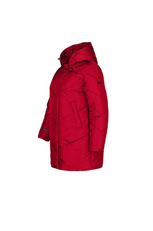 Теплая зимняя куртка комфортной длины. Капюшон и планка выполнены из цельного куска утеплителя и материи без разрезов и швов. Центральная застежка и вход в карман на потайных кнопках. Утеплитель файбертек создают хорошую защиту от холода.